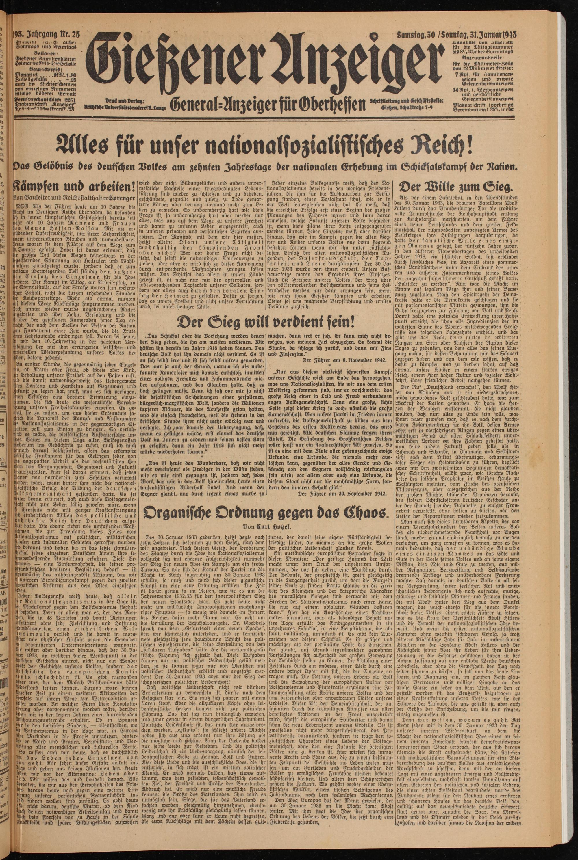Gießener Anzeiger. 1868-1943