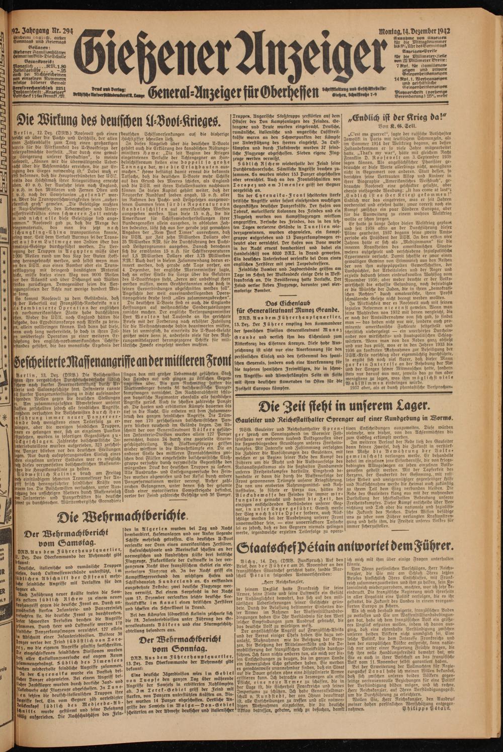 Gießener Anzeiger. 1868-1943
