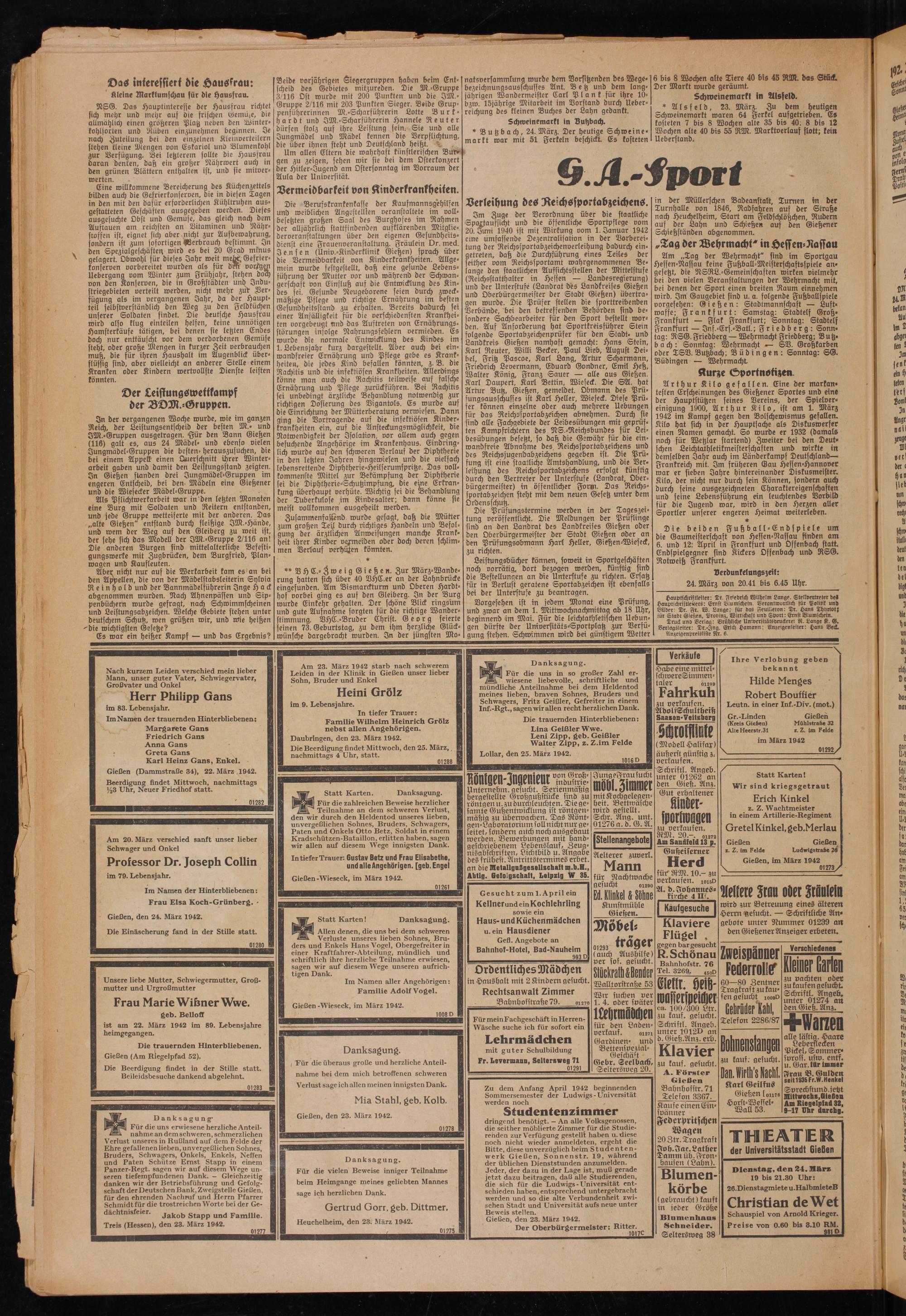 Gießener Anzeiger. 1868-1943