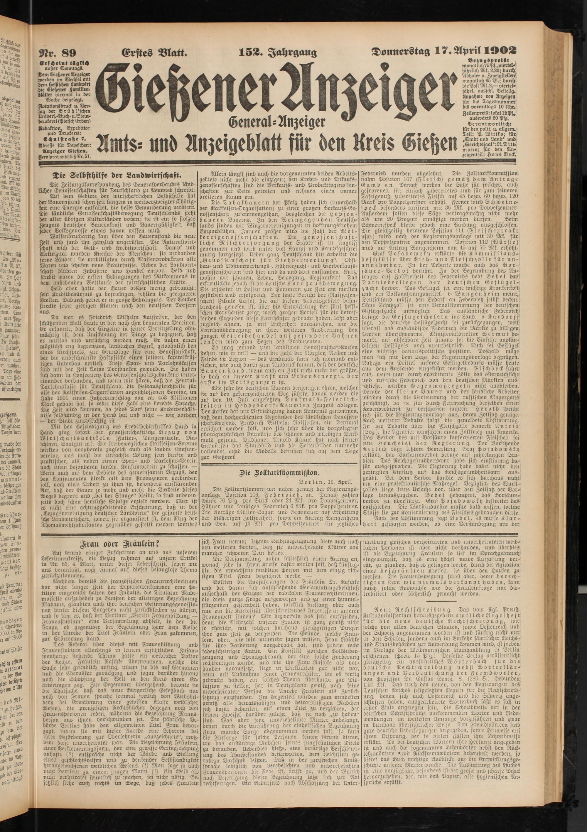 17.4.1902 Erstes Blatt