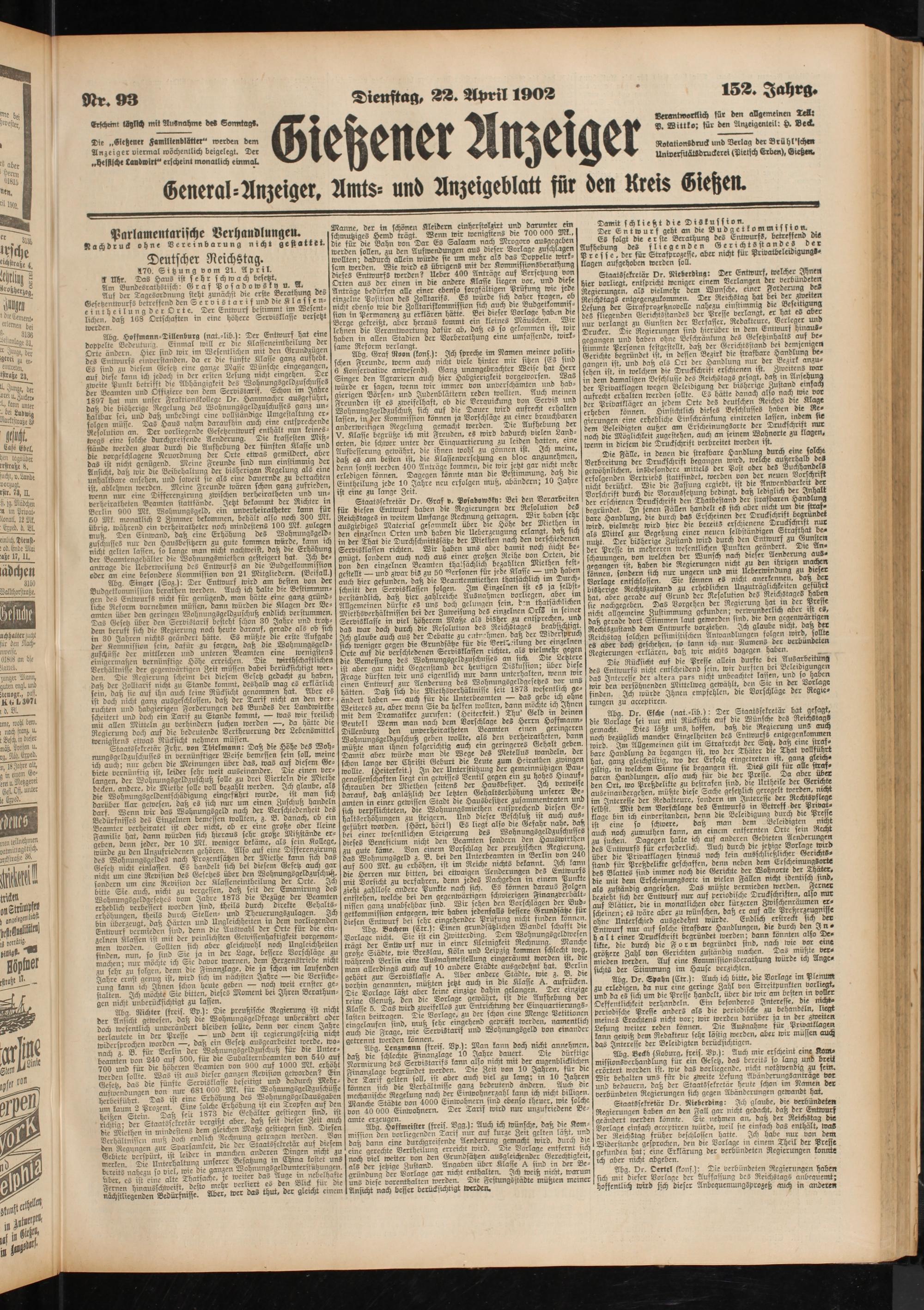 Gießener Anzeiger. 1868-1943
