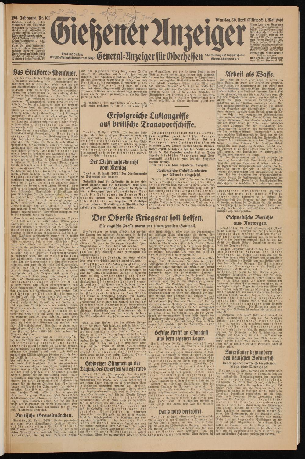 Gießener Anzeiger. 1868-1943