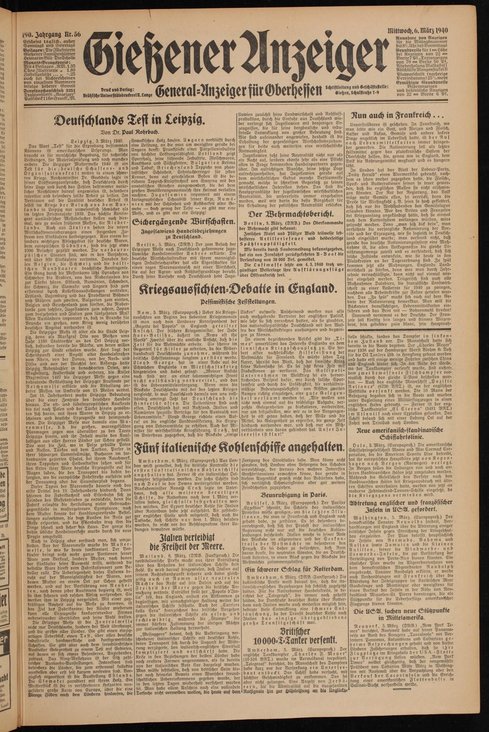 Gießener Anzeiger. 1868-1943
