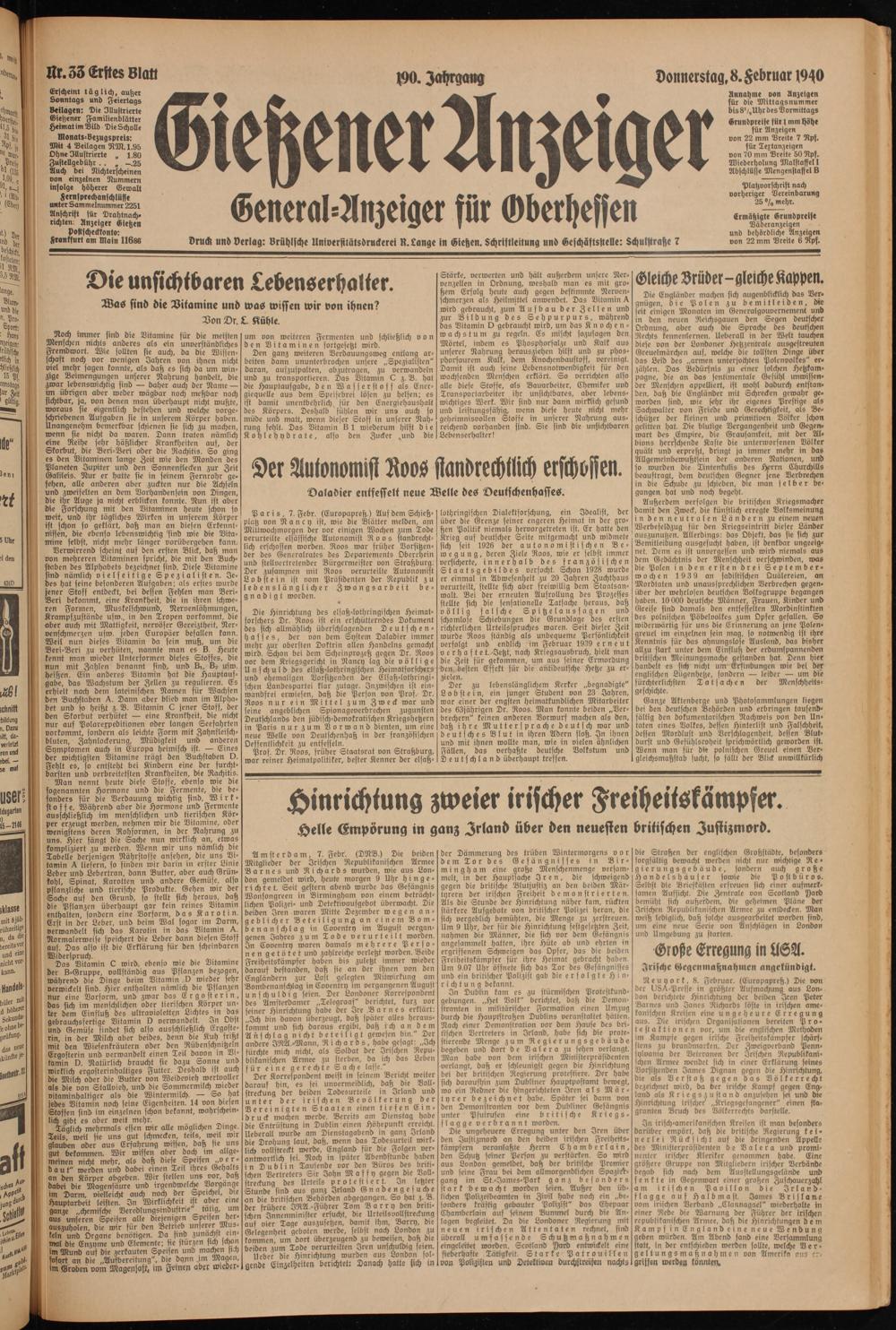 Gießener Anzeiger. 1868-1943
