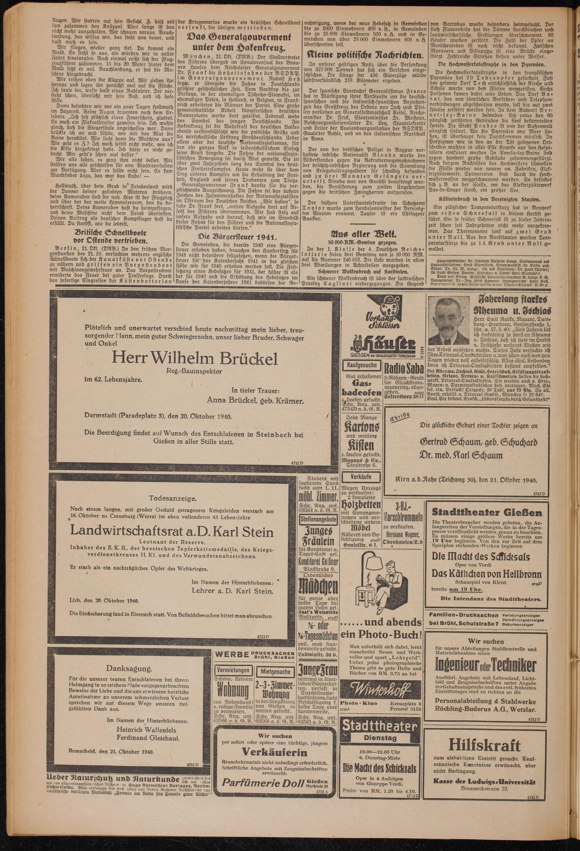 Gießener Anzeiger. 1868-1943