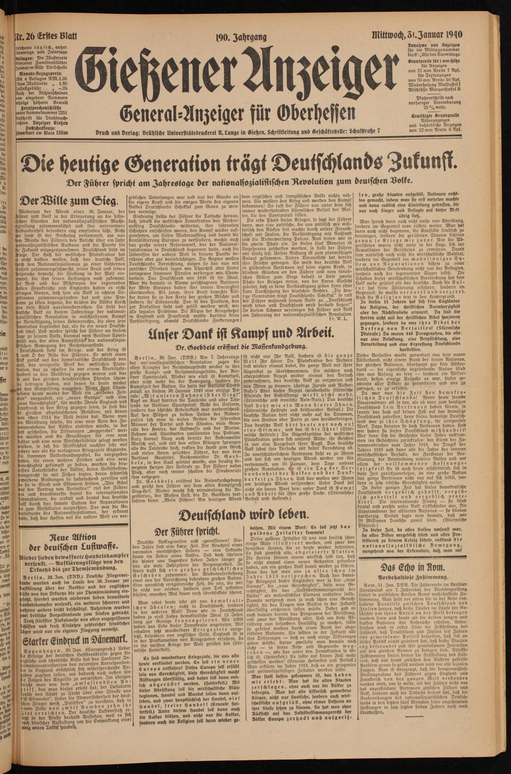 Gießener Anzeiger. 1868-1943