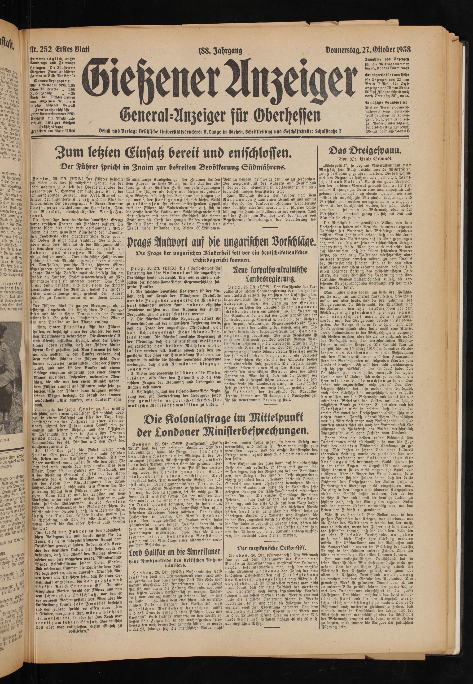 Gießener Anzeiger. 1868-1943