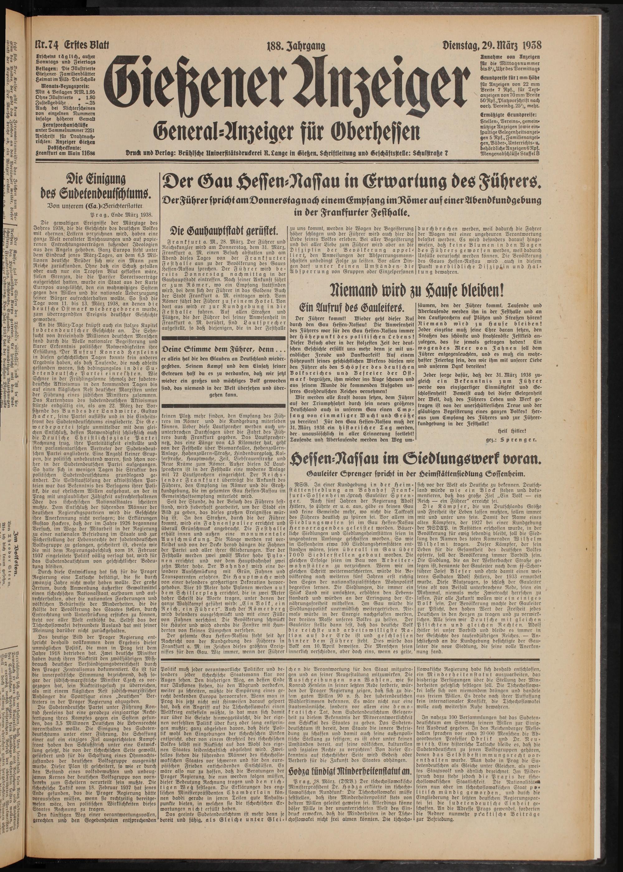 Gießener Anzeiger. 1868-1943