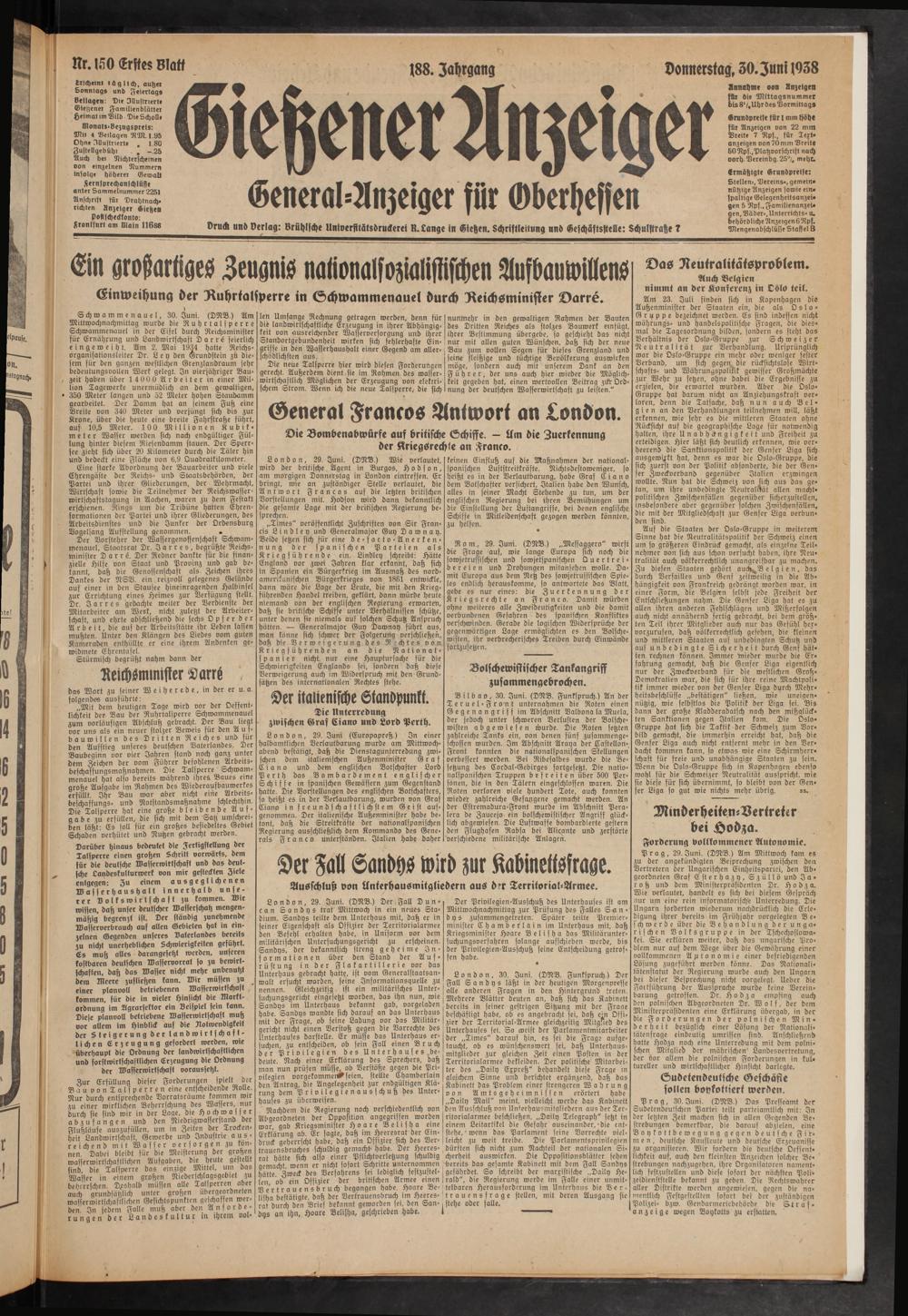 Gießener Anzeiger. 1868-1943