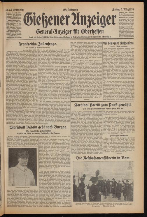 Gießener Anzeiger. 1868-1943