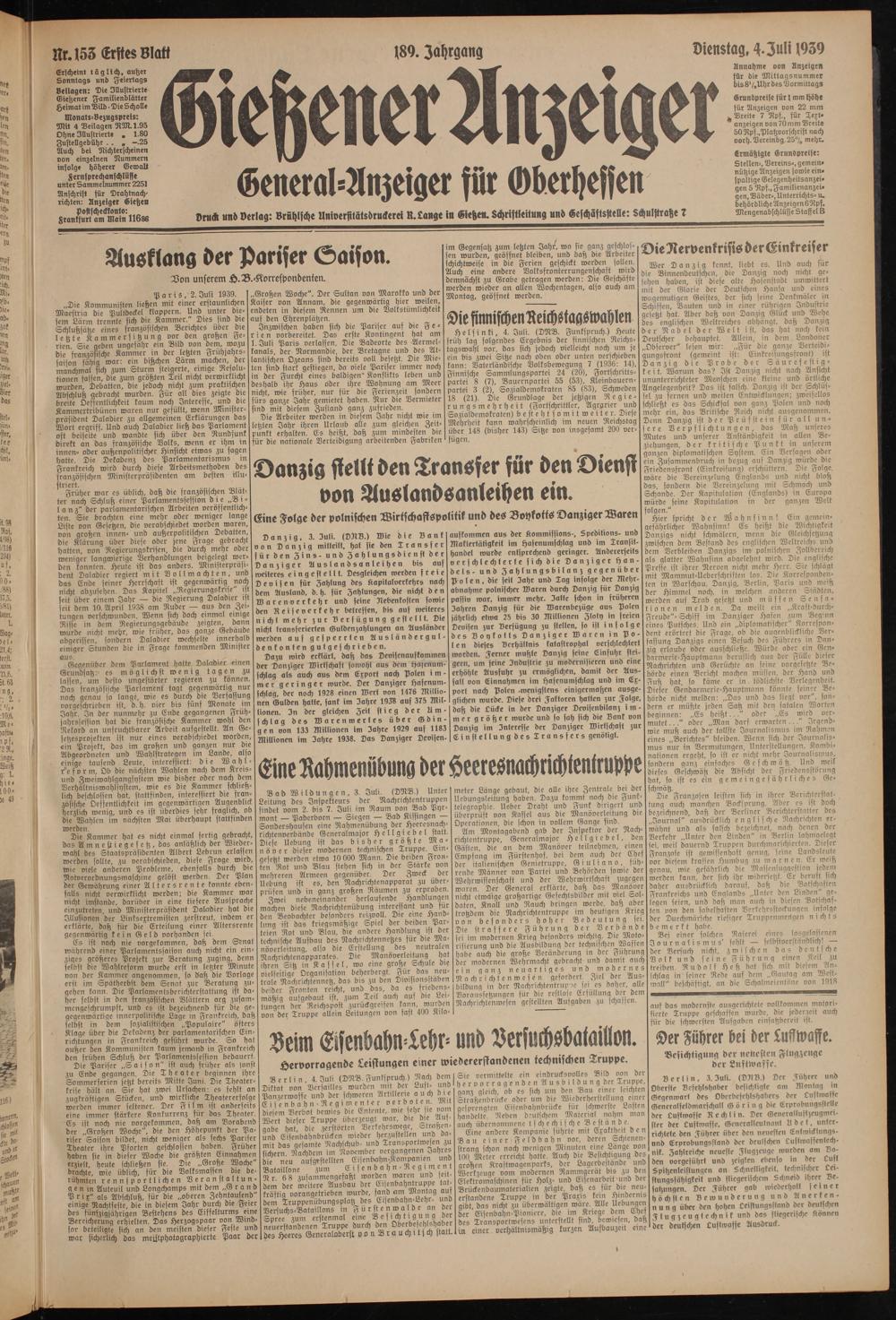 Gießener Anzeiger. 1868-1943