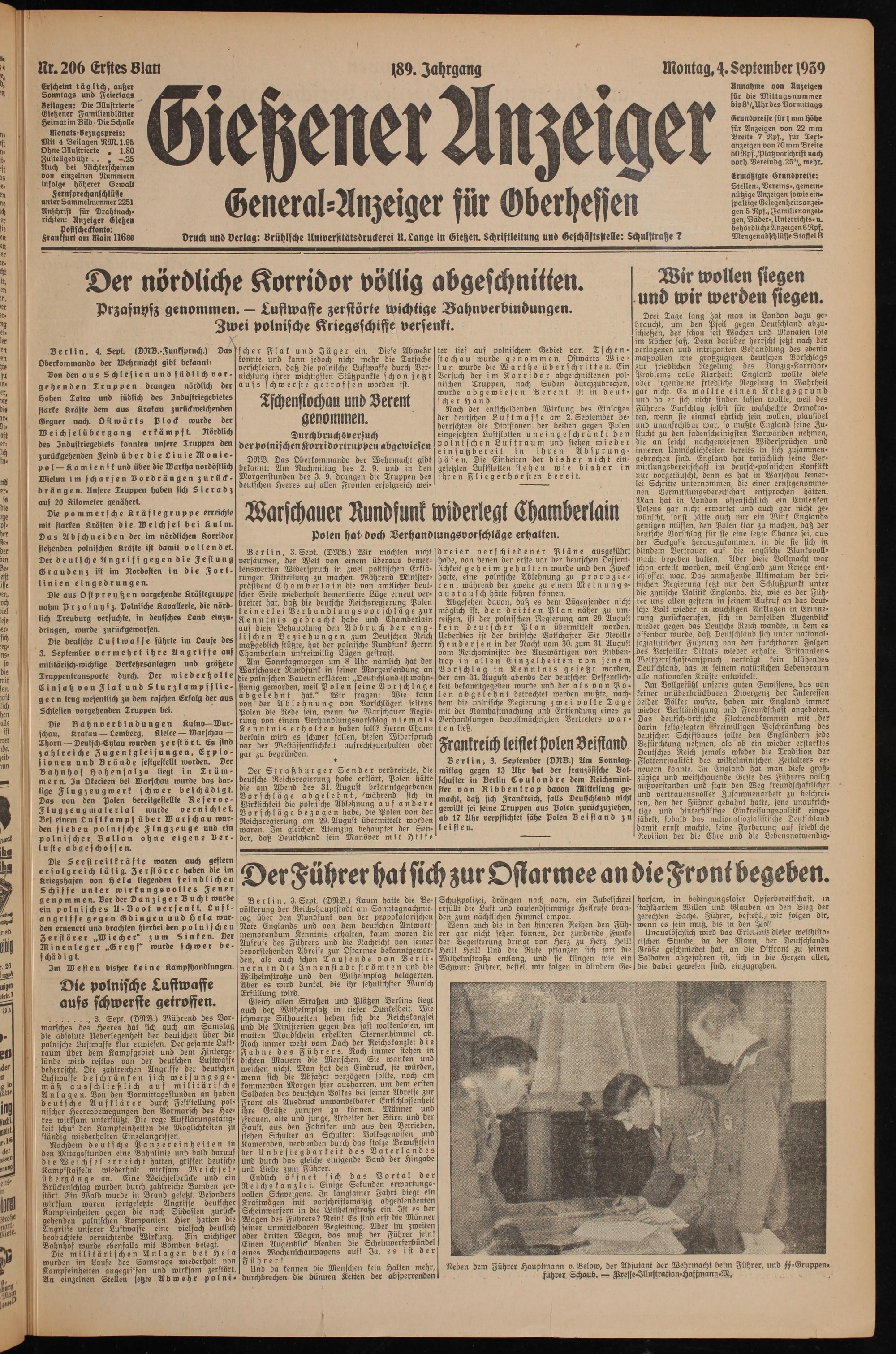 Gießener Anzeiger. 1868-1943