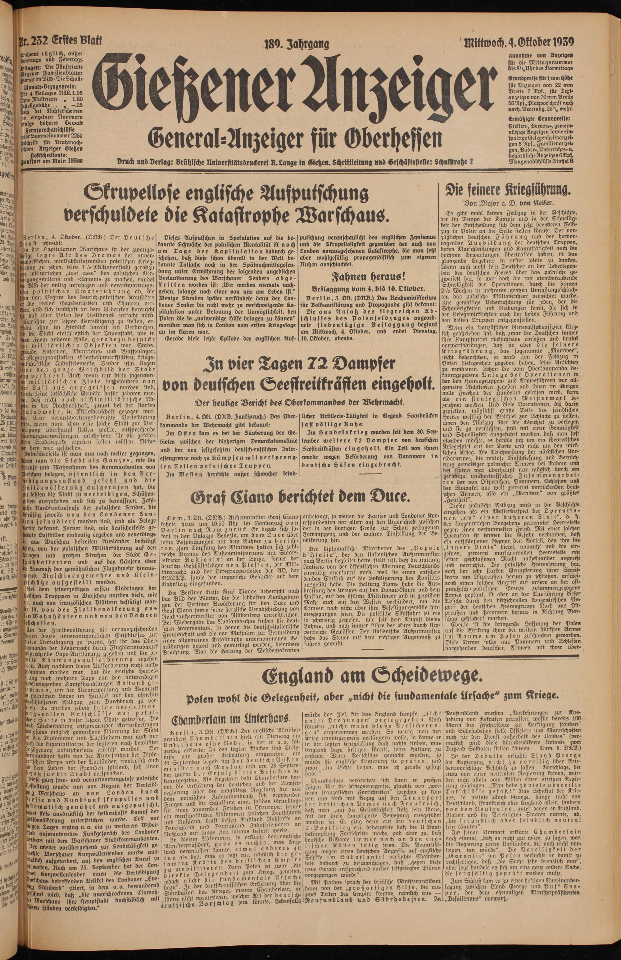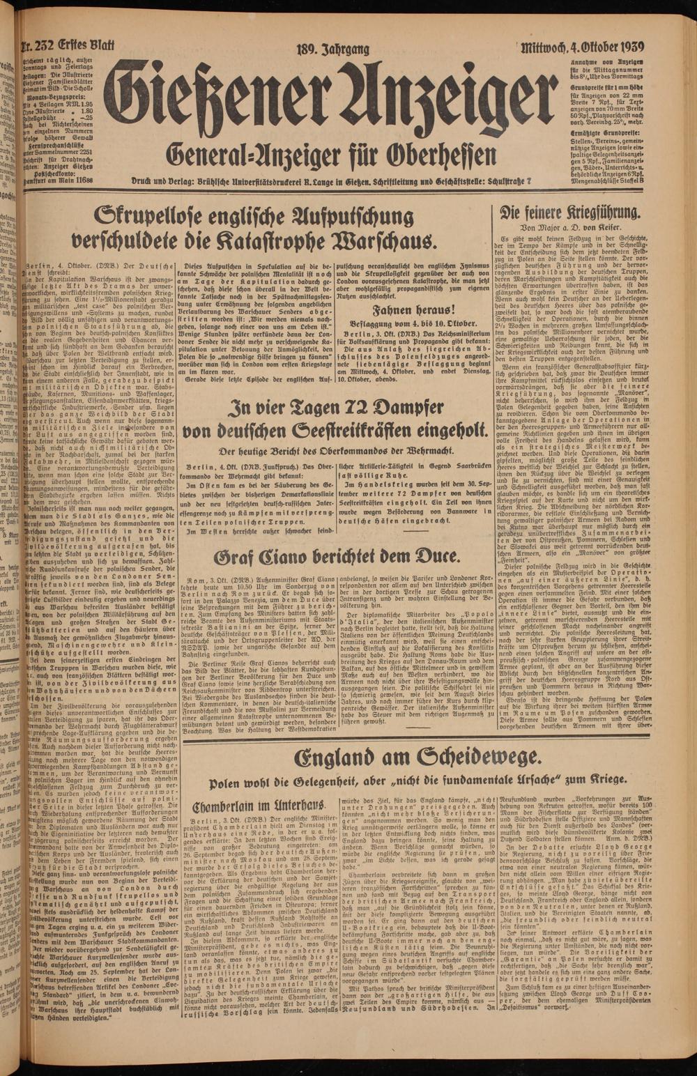 Gießener Anzeiger. 1868-1943