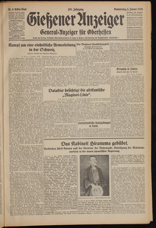 Gießener Anzeiger. 1868-1943
