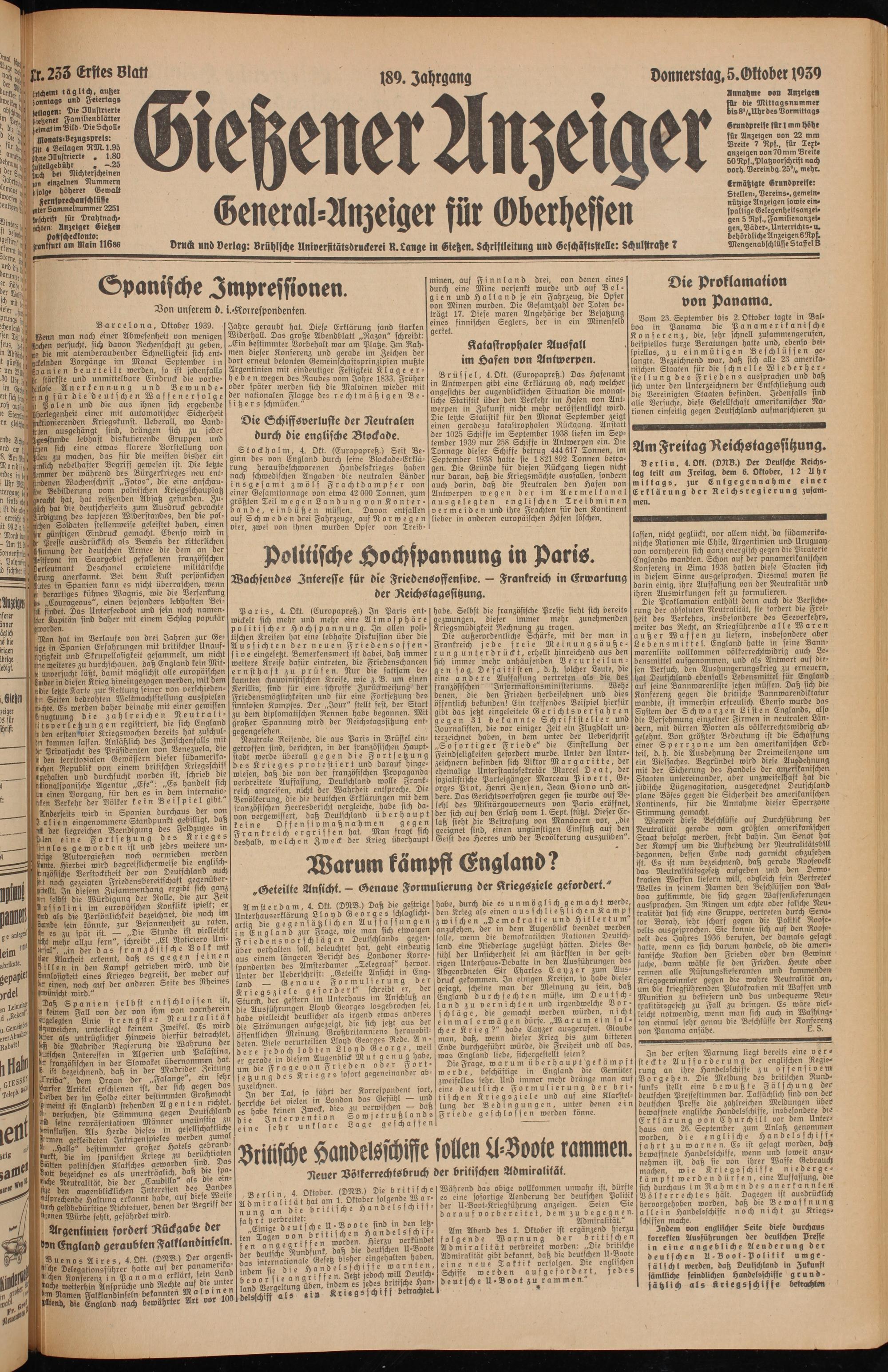 Gießener Anzeiger. 1868-1943