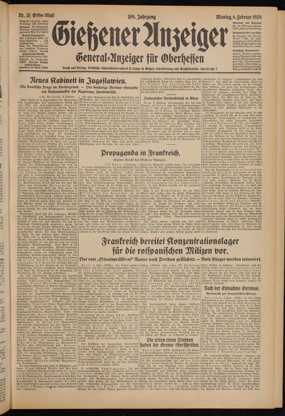 Gießener Anzeiger. 1868-1943