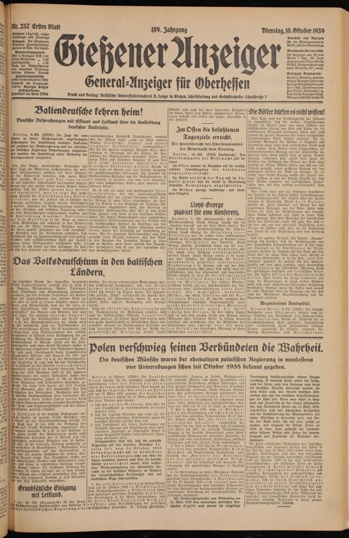 Gießener Anzeiger. 1868-1943