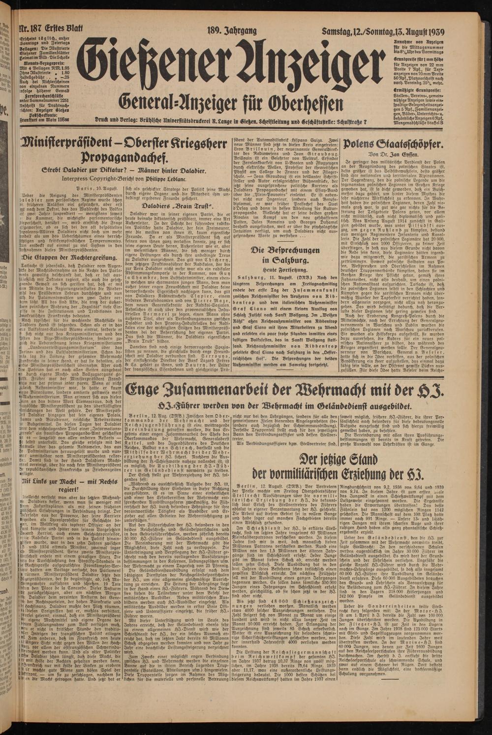 Gießener Anzeiger. 1868-1943