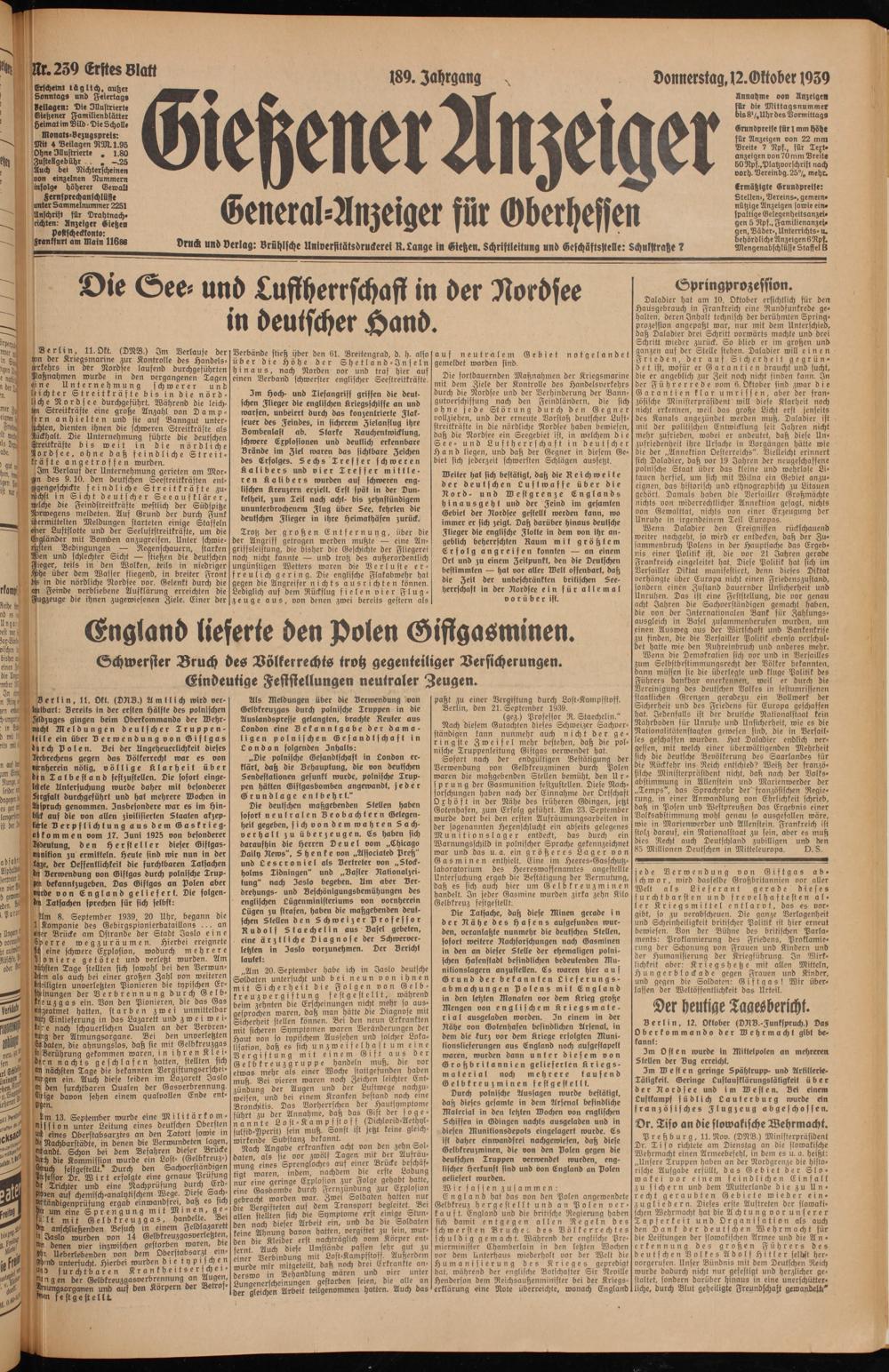 Gießener Anzeiger. 1868-1943