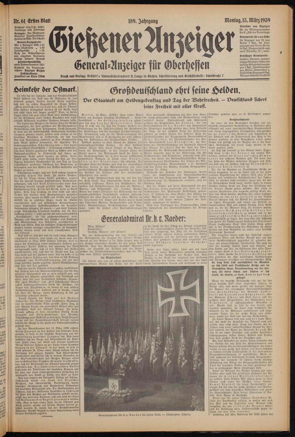 Gießener Anzeiger. 1868-1943