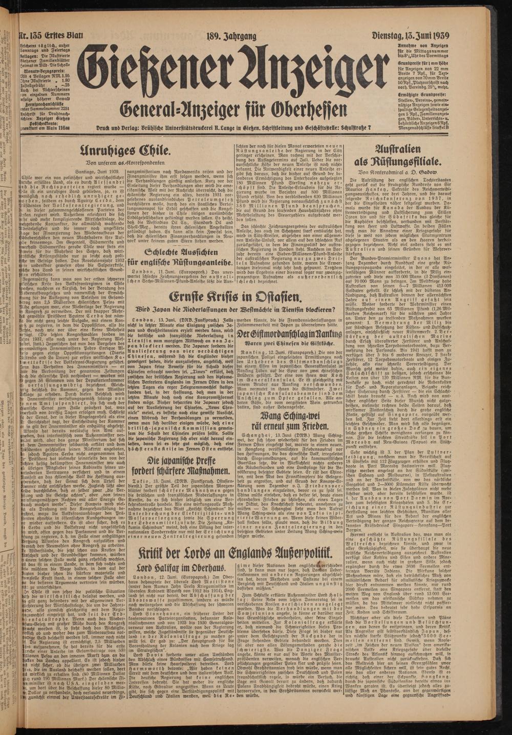 Gießener Anzeiger. 1868-1943