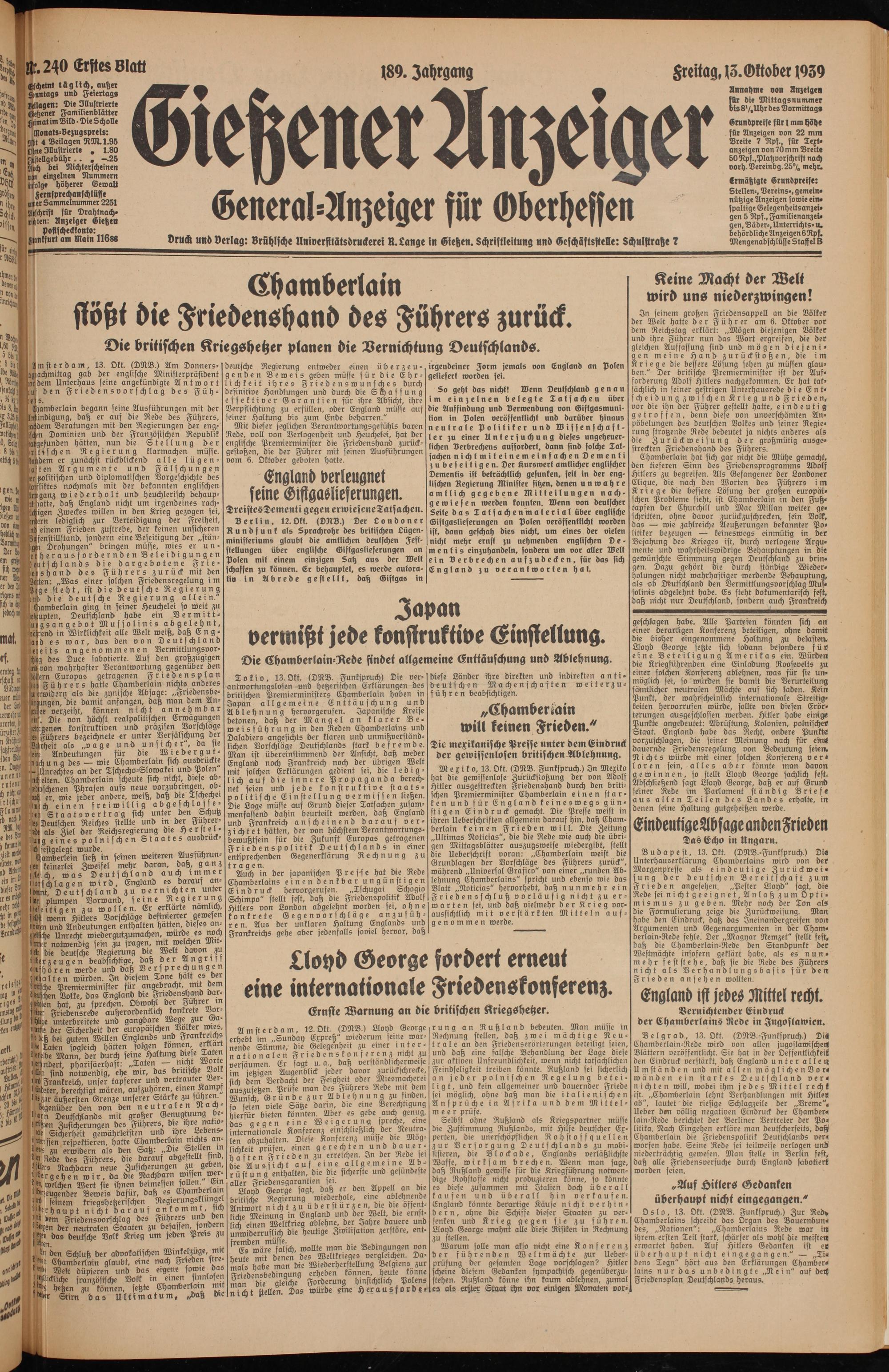 Gießener Anzeiger. 1868-1943
