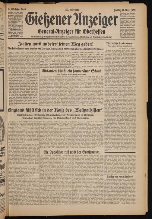 Gießener Anzeiger. 1868-1943