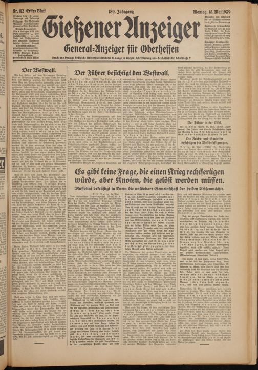 Gießener Anzeiger. 1868-1943