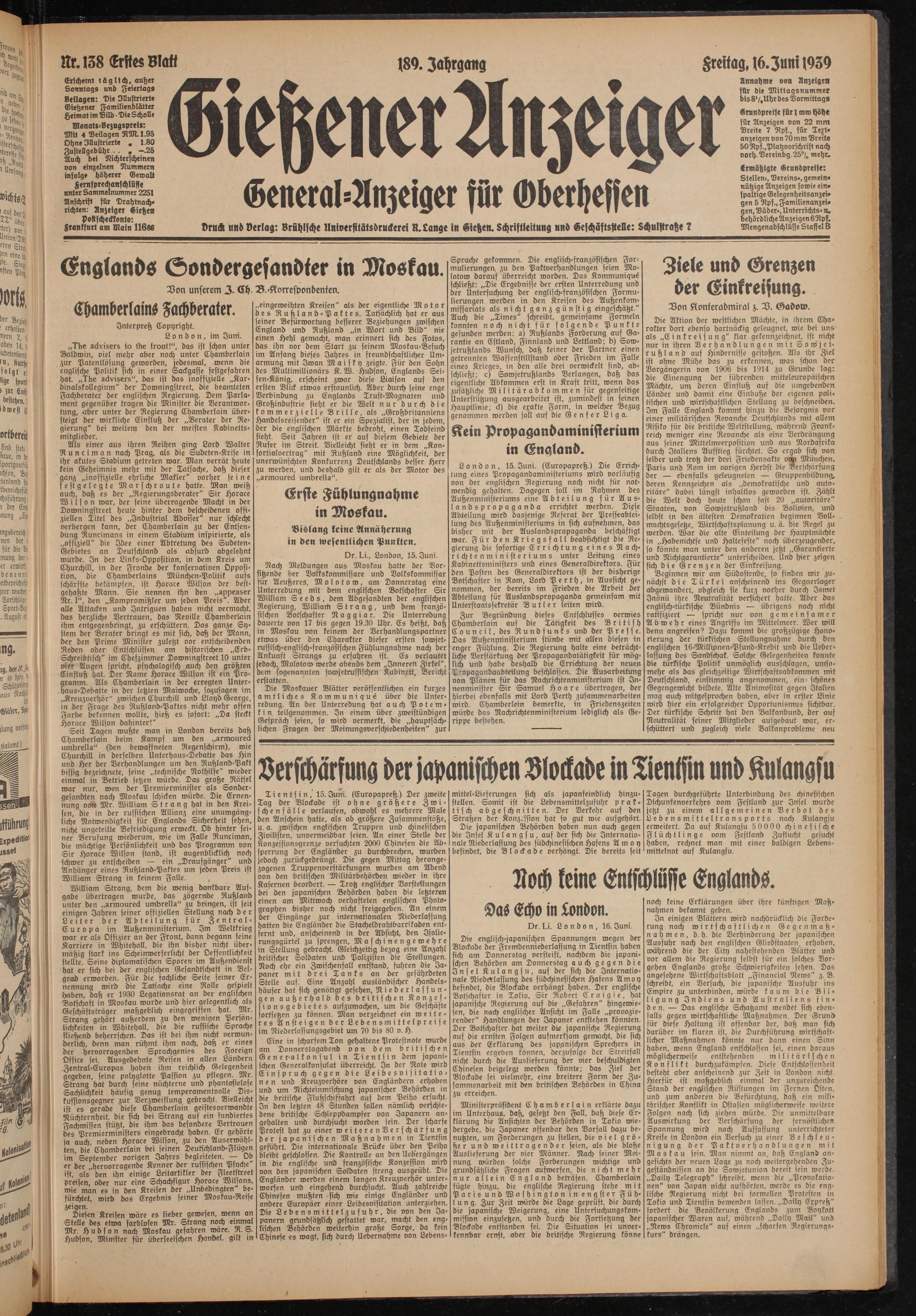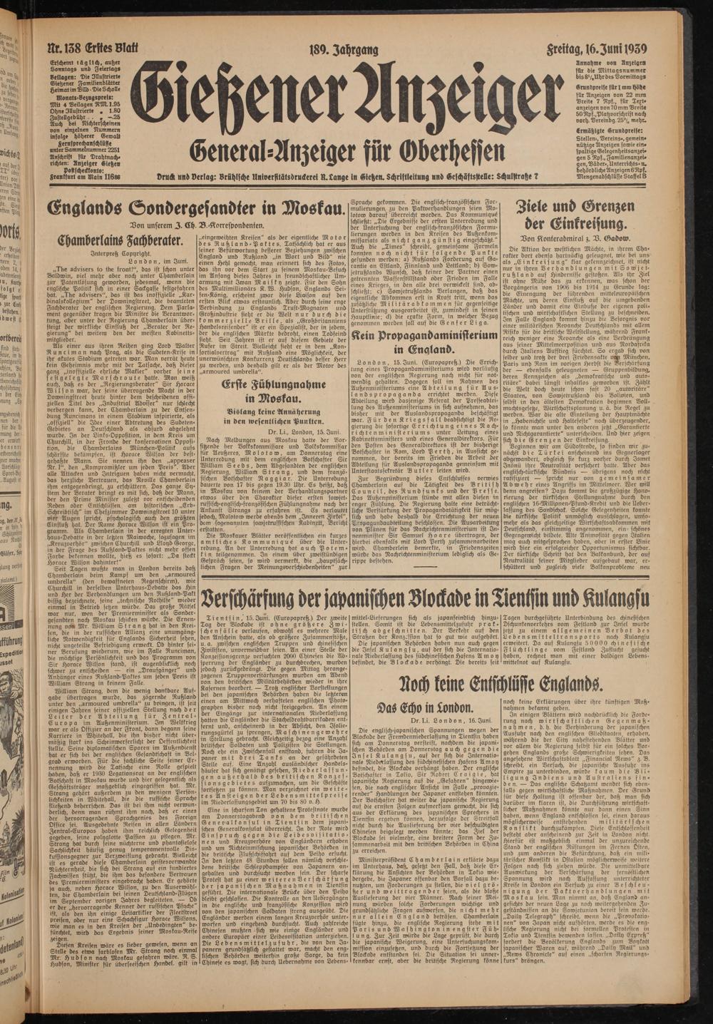 Gießener Anzeiger. 1868-1943