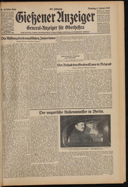 Gießener Anzeiger. 1868-1943