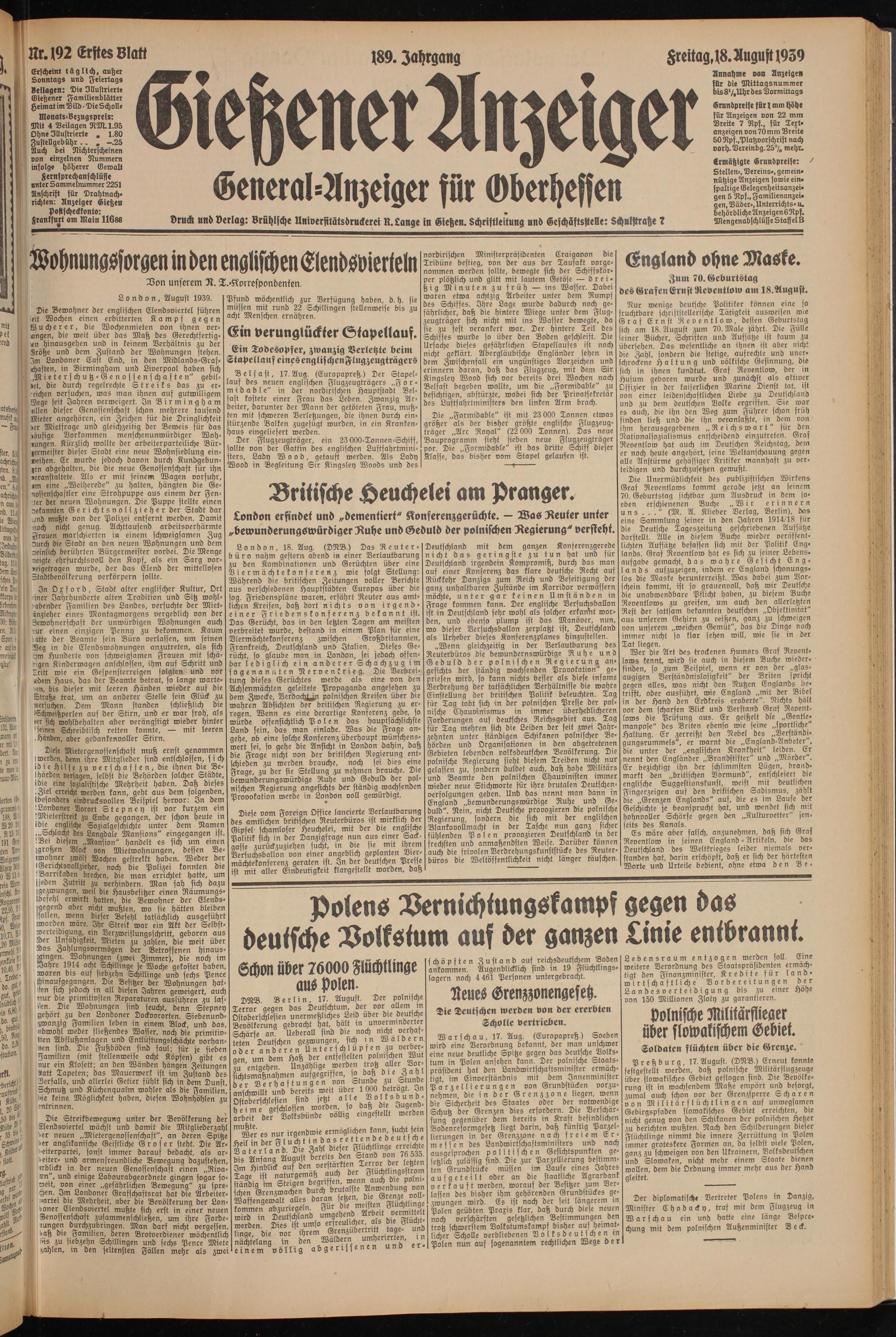 Gießener Anzeiger. 1868-1943