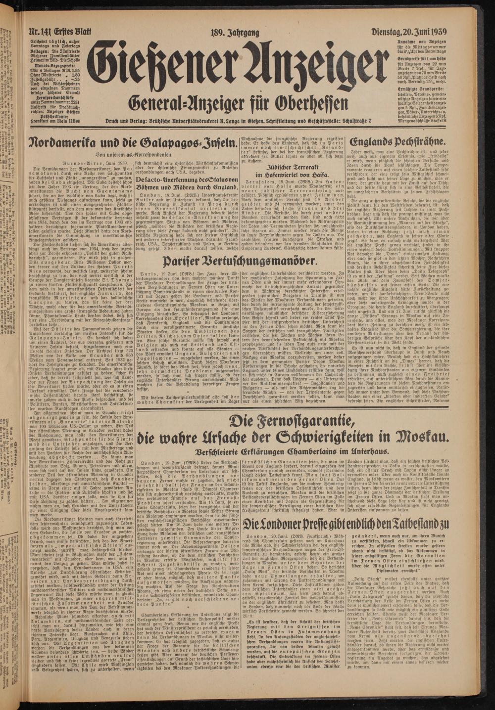 Gießener Anzeiger. 1868-1943