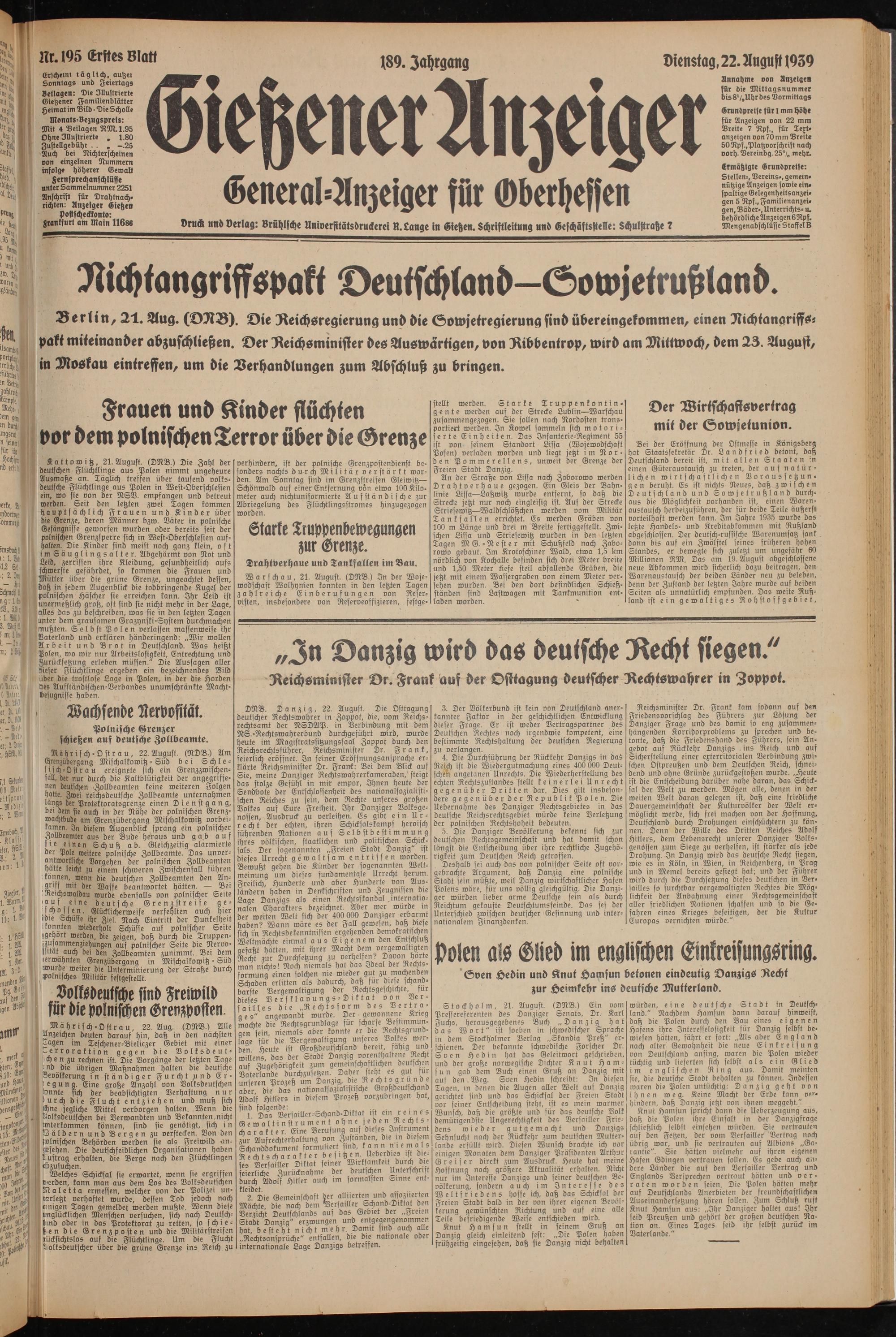 Gießener Anzeiger. 1868-1943