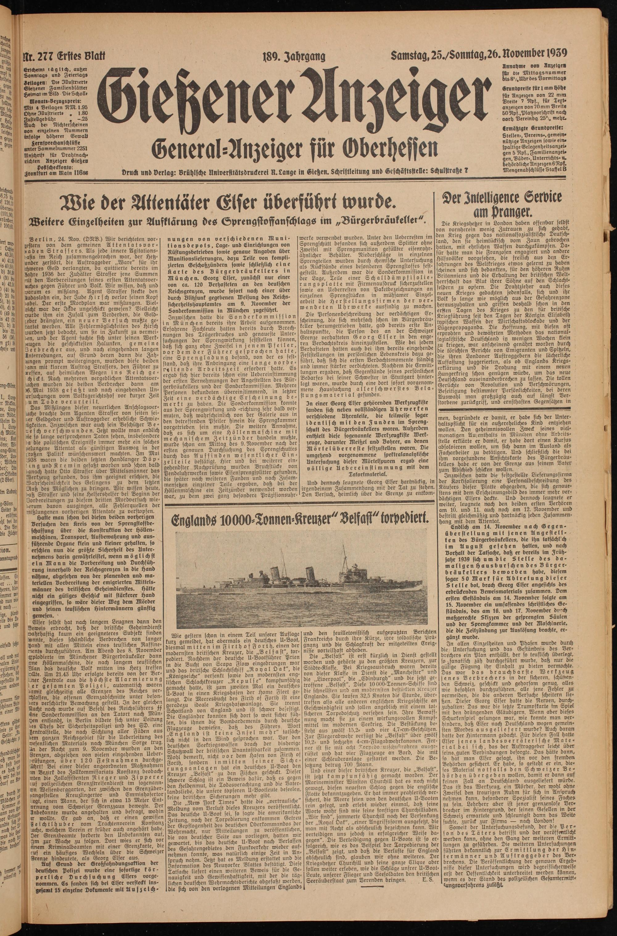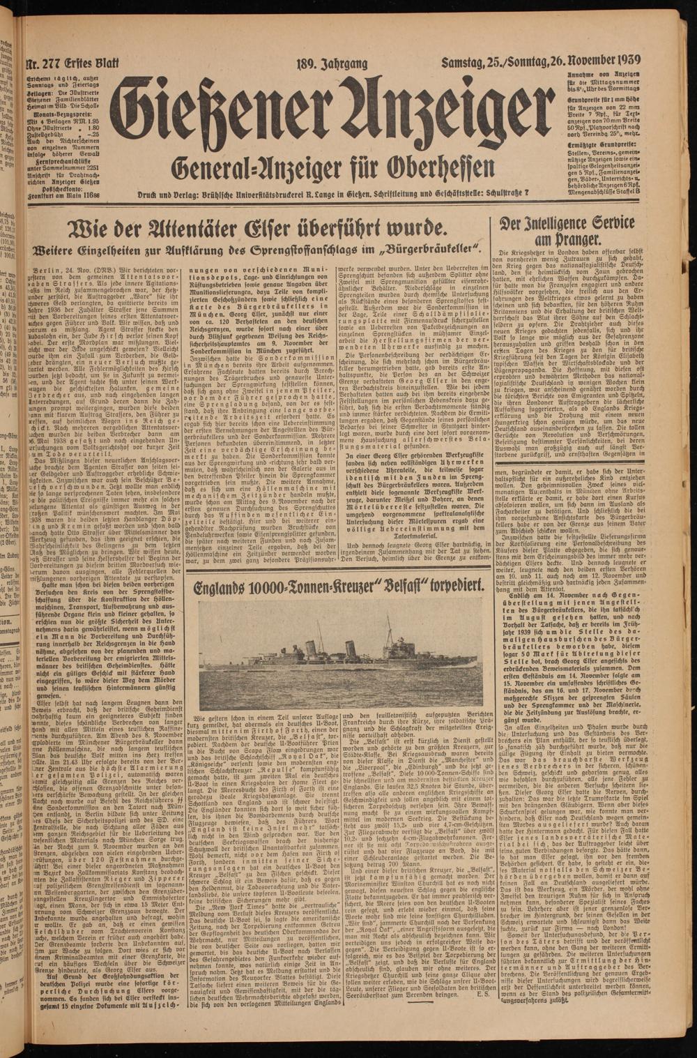 Gießener Anzeiger. 1868-1943