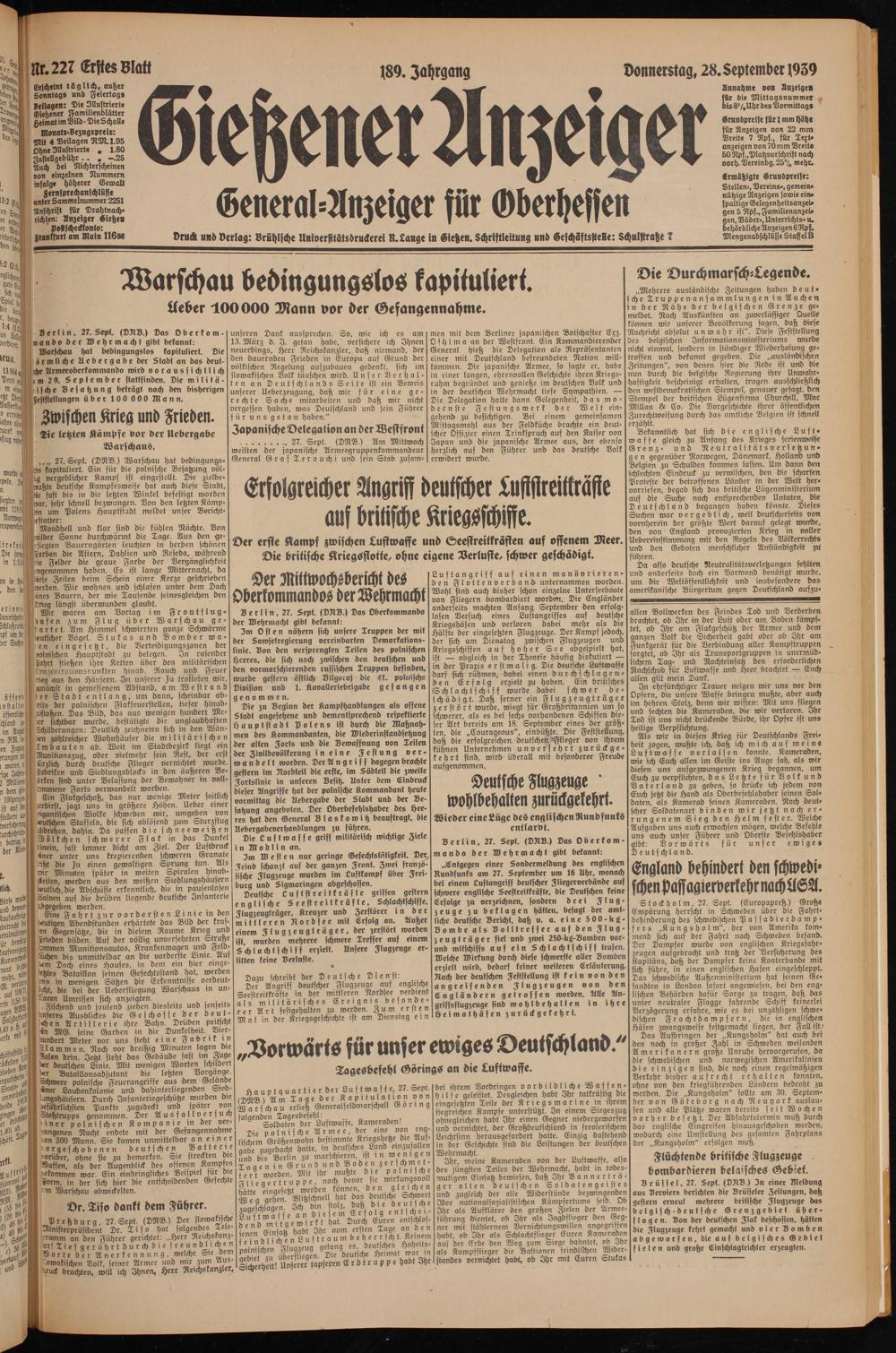 Gießener Anzeiger. 1868-1943