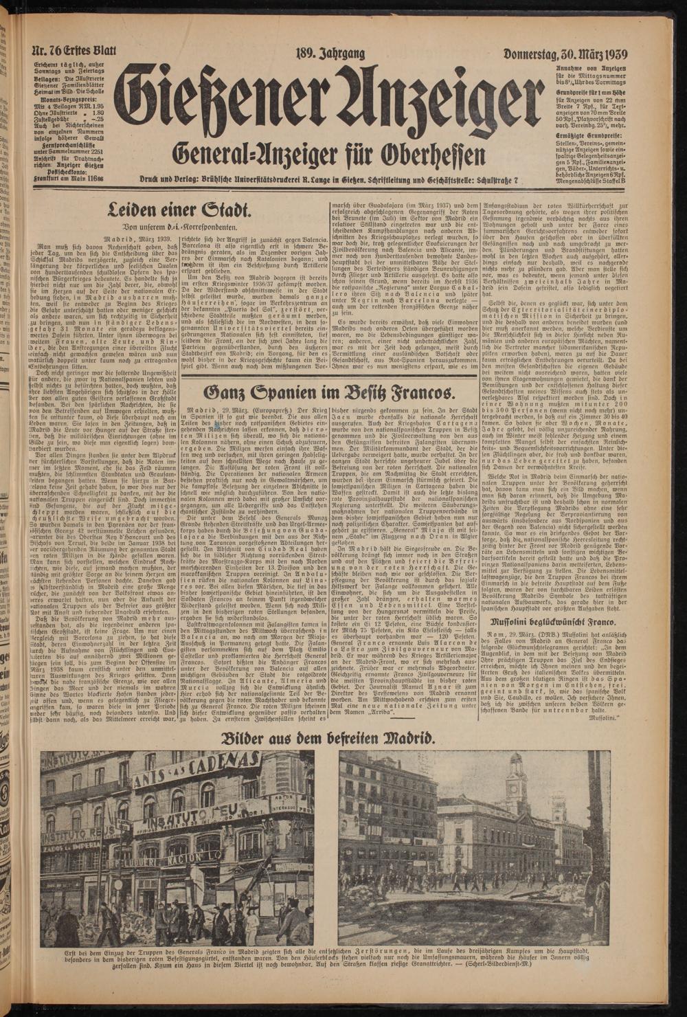 Gießener Anzeiger. 1868-1943