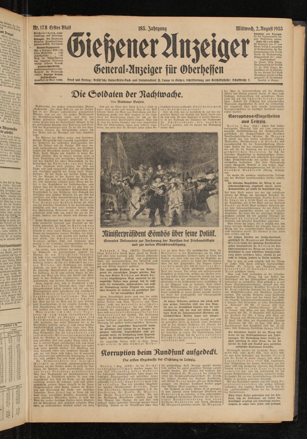 2.8.1933 Erstes Blatt