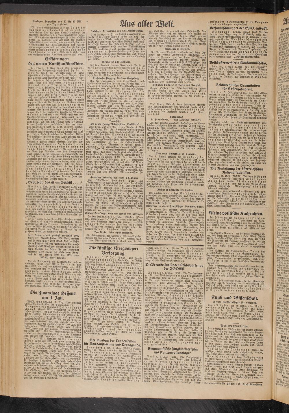 2.8.1933 Erstes Blatt