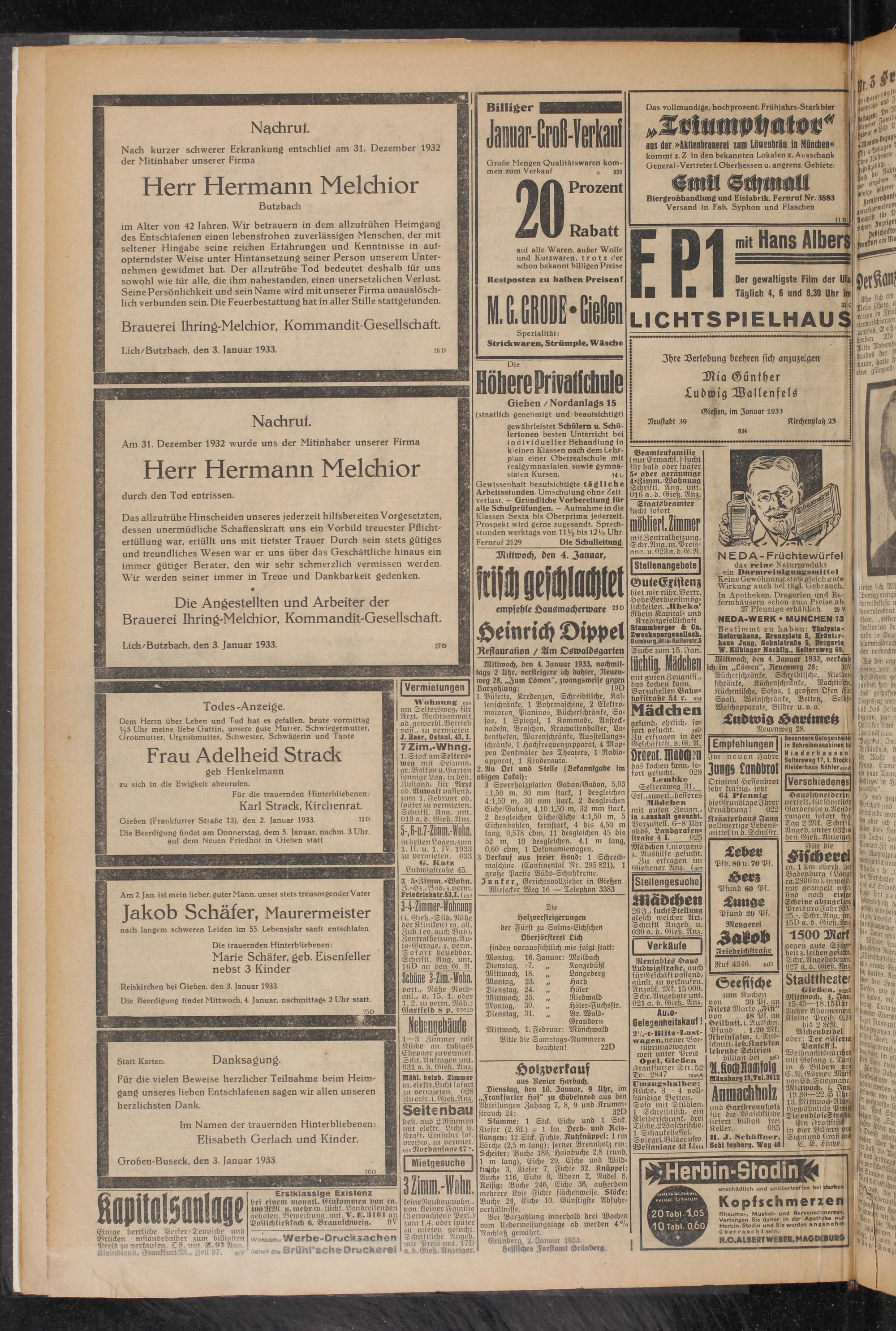 3.1.1933 Erstes Blatt