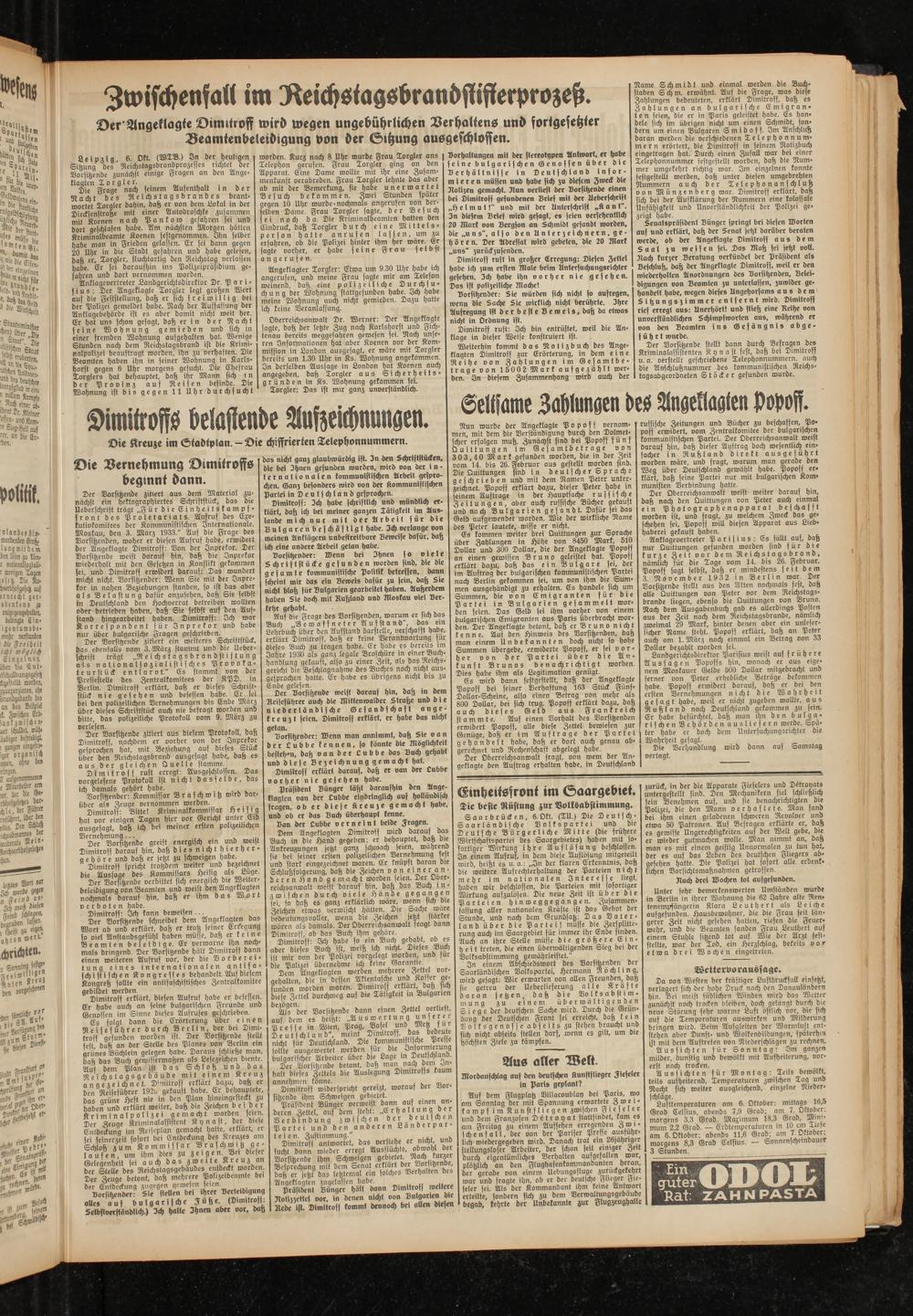 (7.10.1933) Frühausgabe