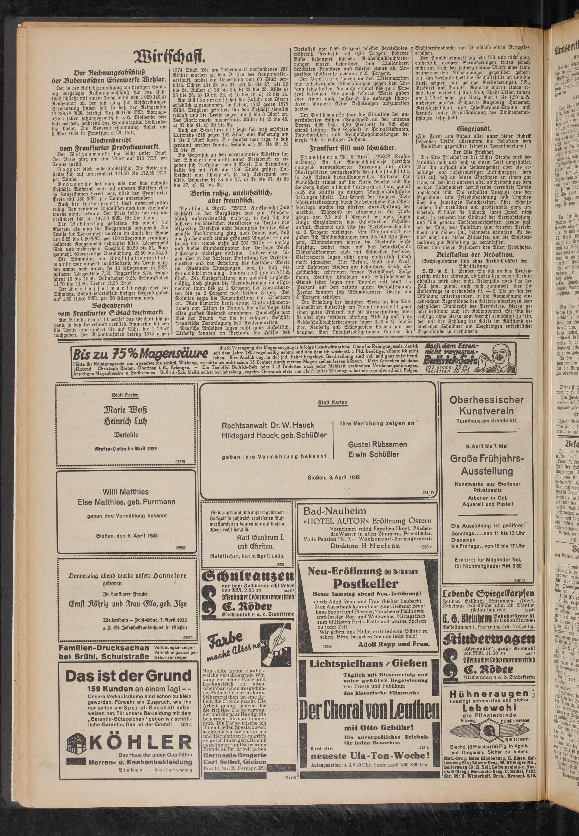 8.4.1933 Erstes Blatt