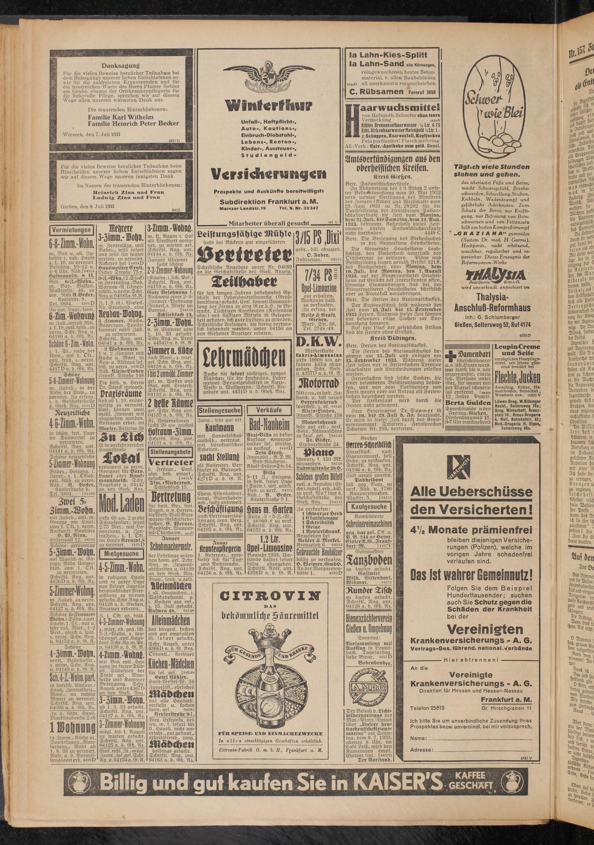 8.7.1933 Erstes Blatt