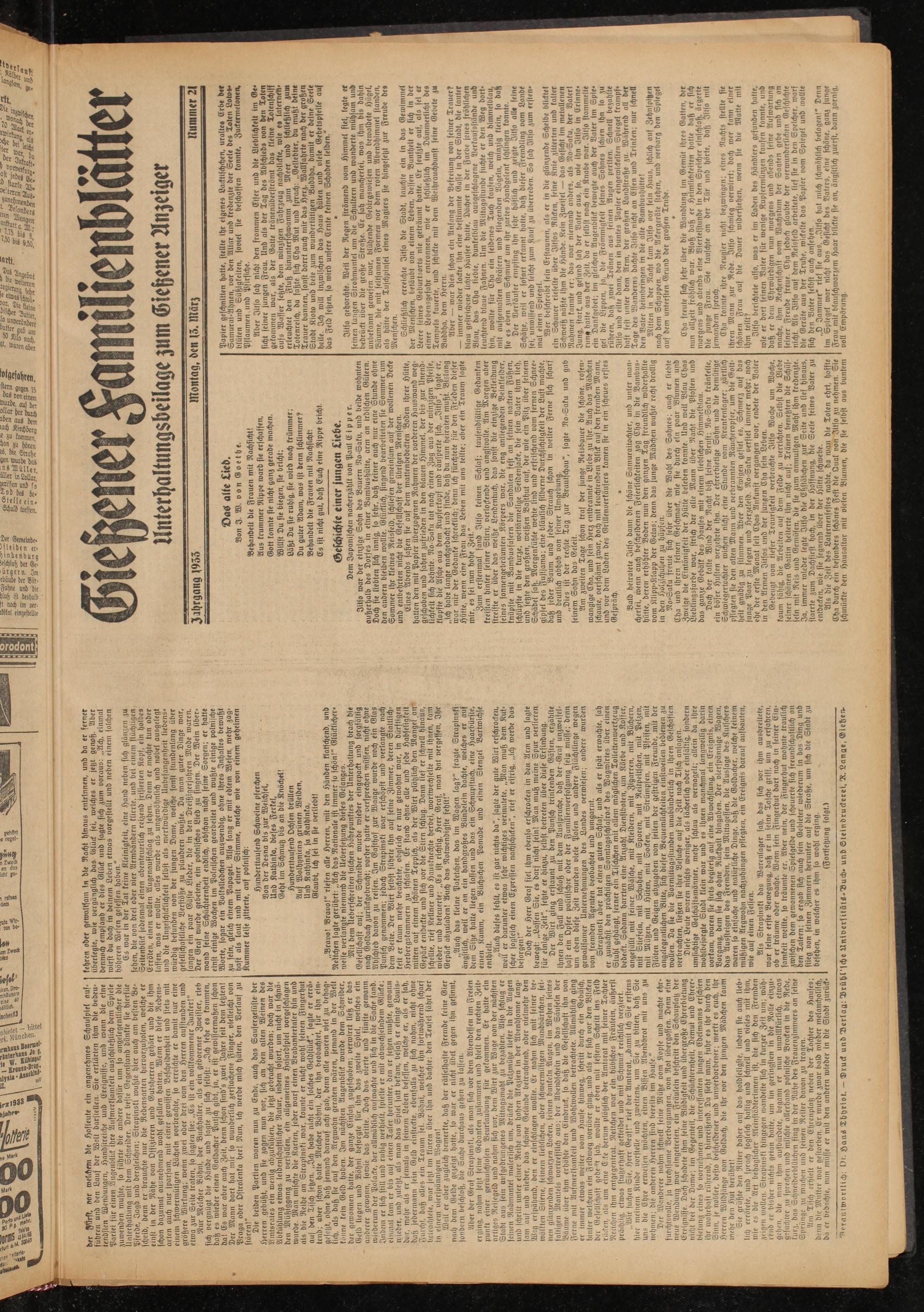 13.3.1933 Erstes Blatt