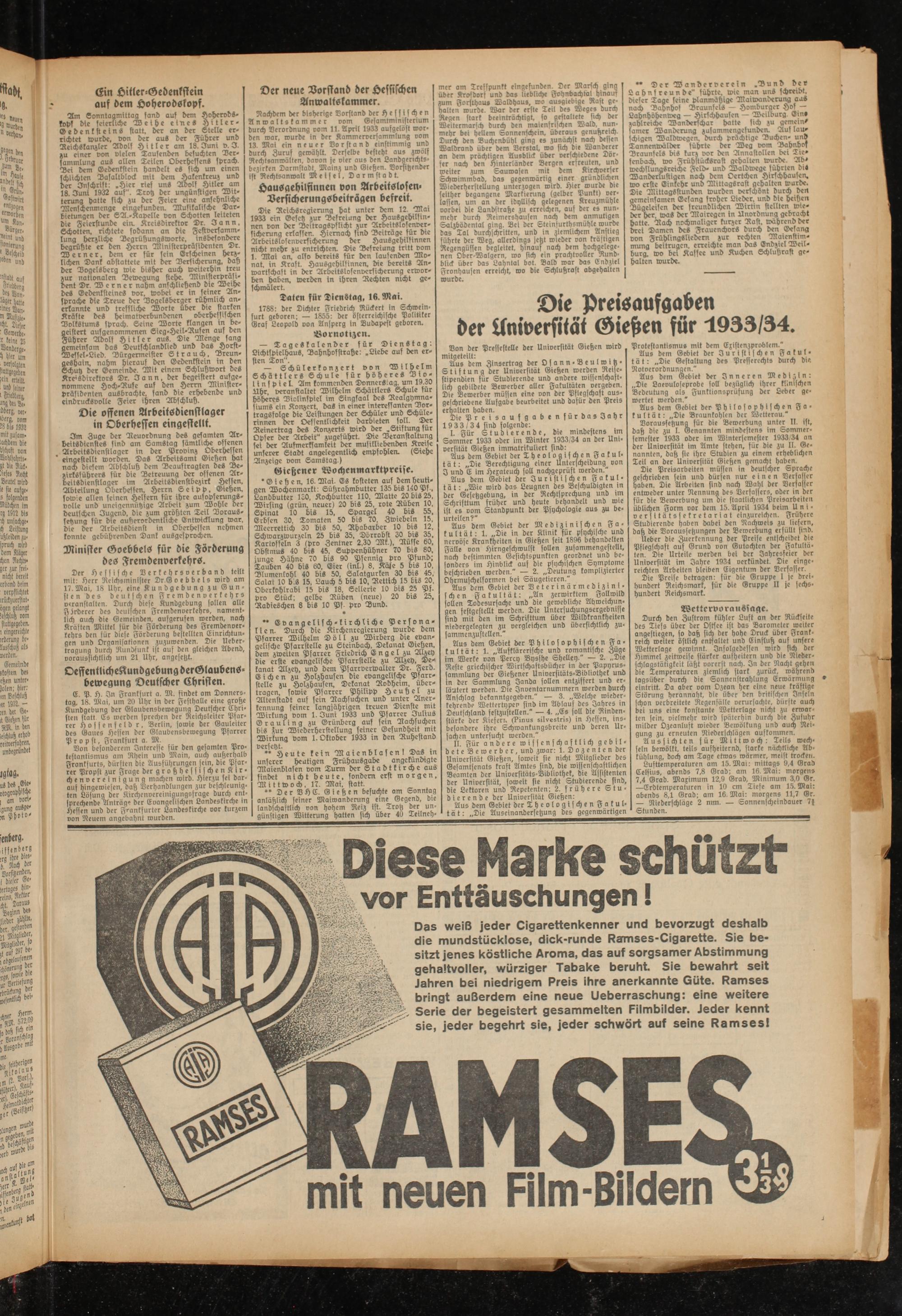 16.5.1933 Erstes Blatt