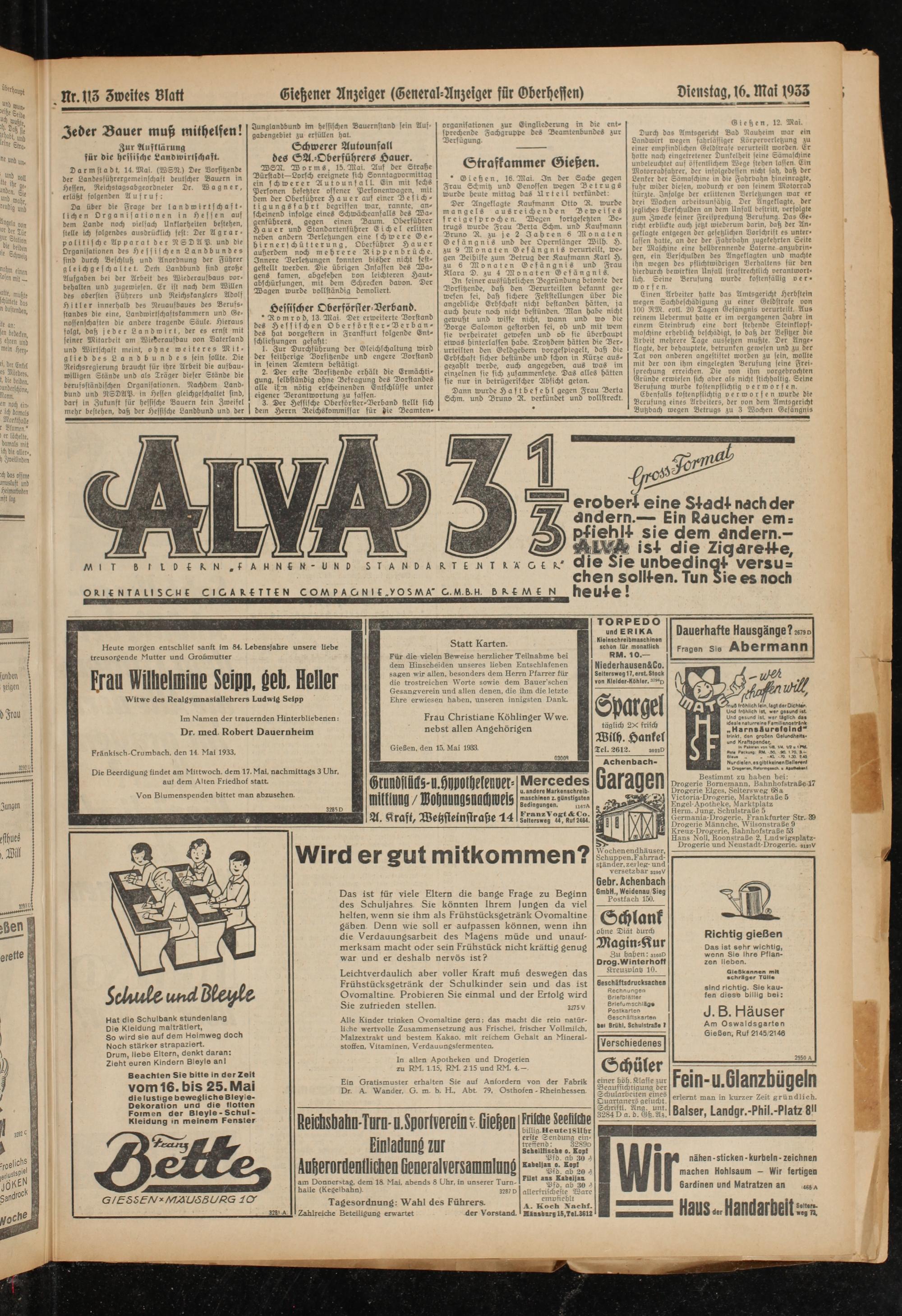 (16.5.1933) Erstes Blatt