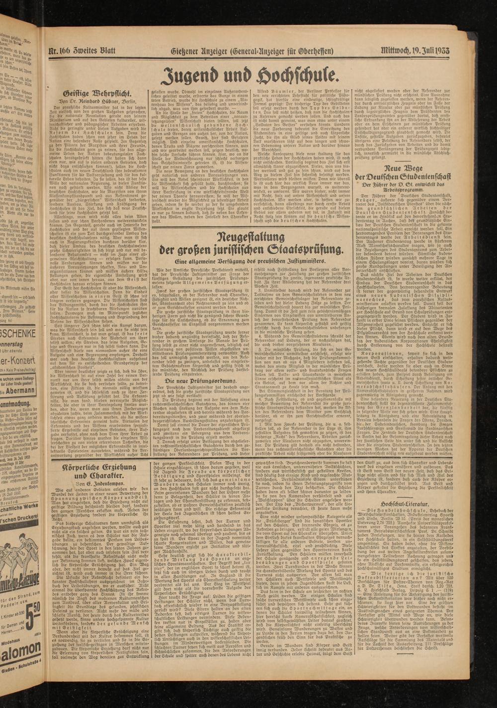 19.7.1933 Erstes Blatt