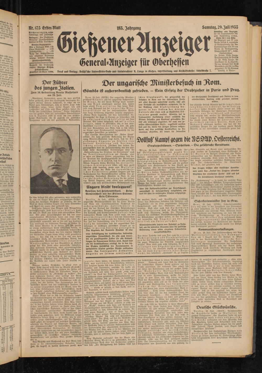 29.7.1933 Erstes Blatt