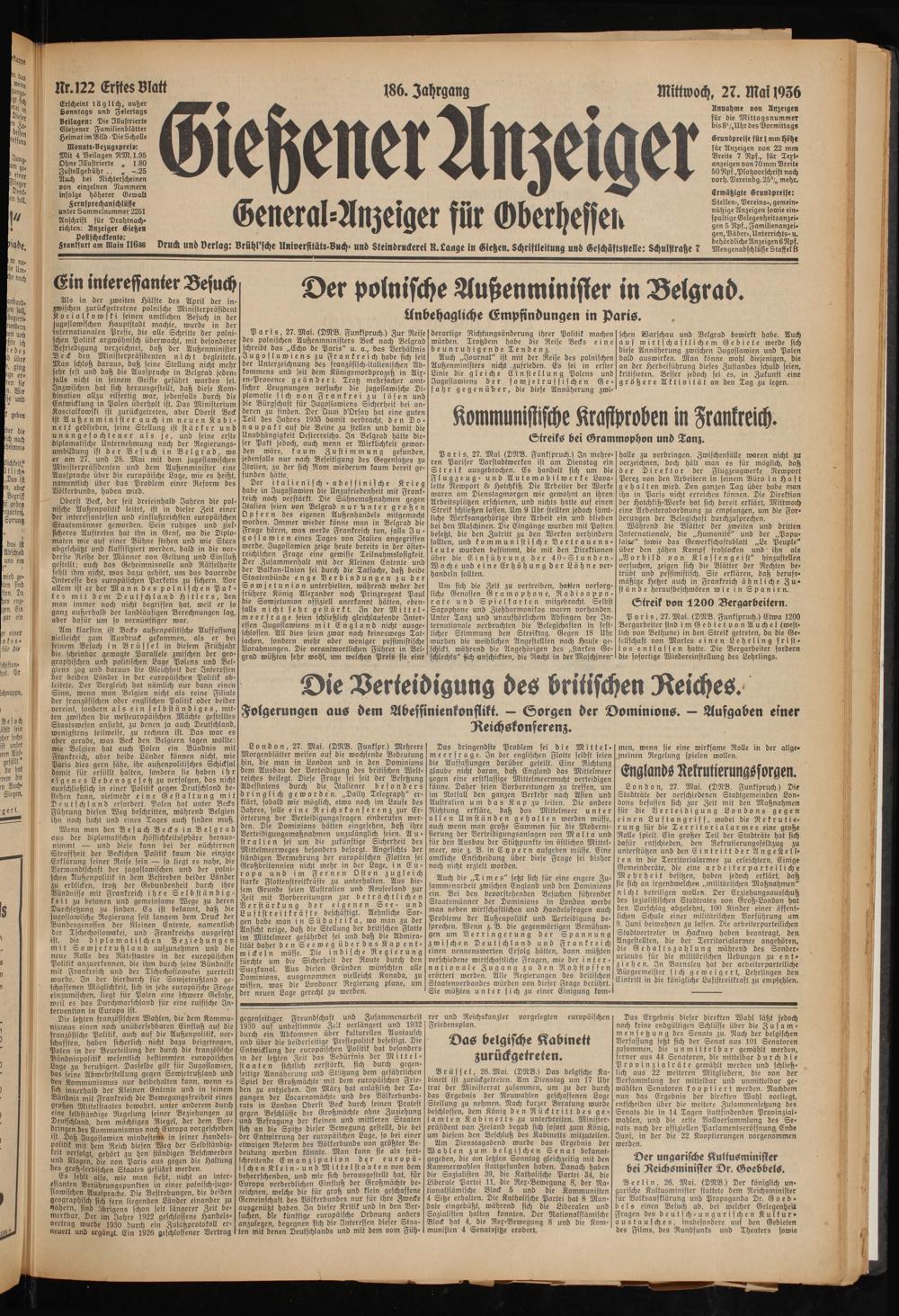 Gießener Anzeiger. 1868-1943