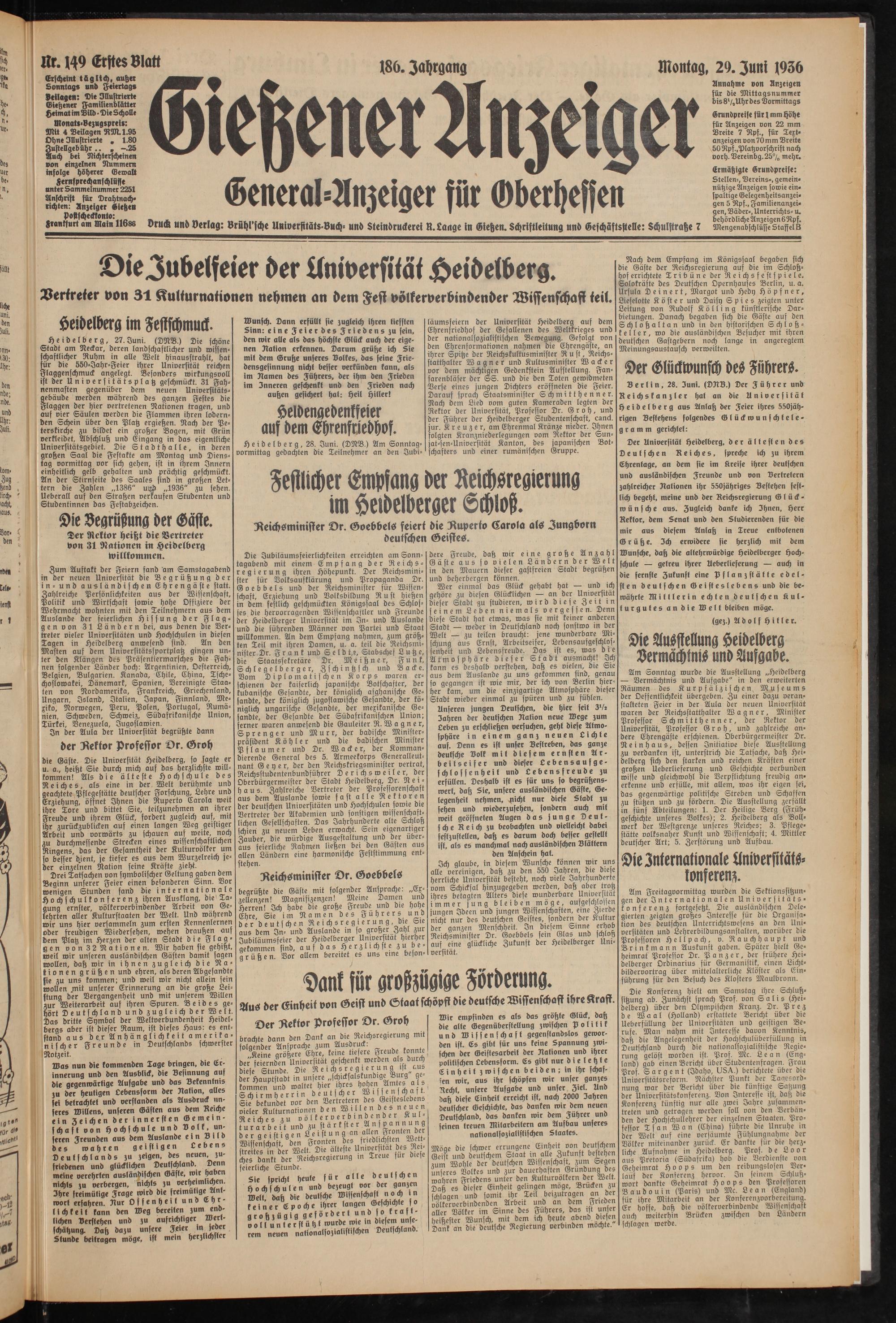 Gießener Anzeiger. 1868-1943