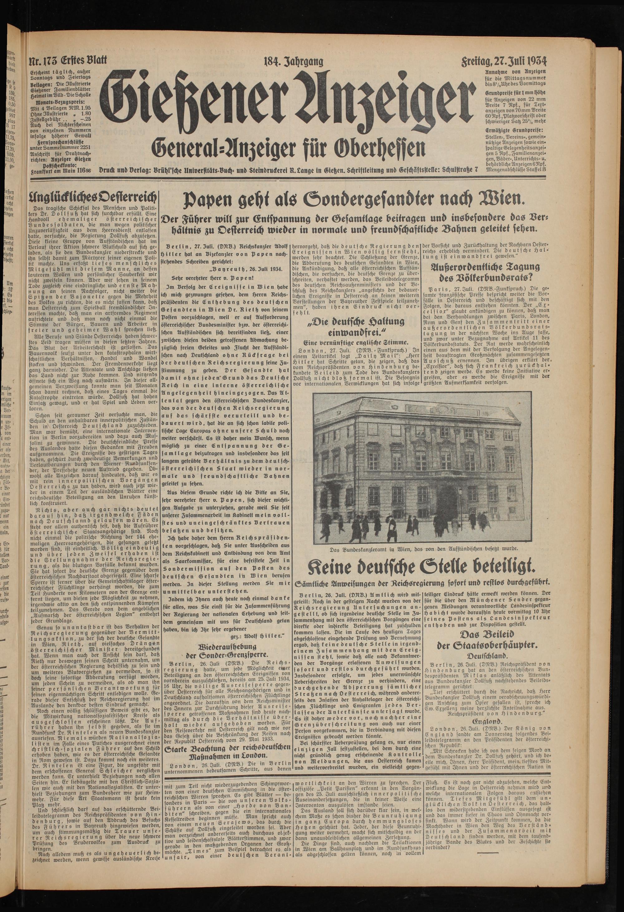 Gießener Anzeiger. 1868-1943